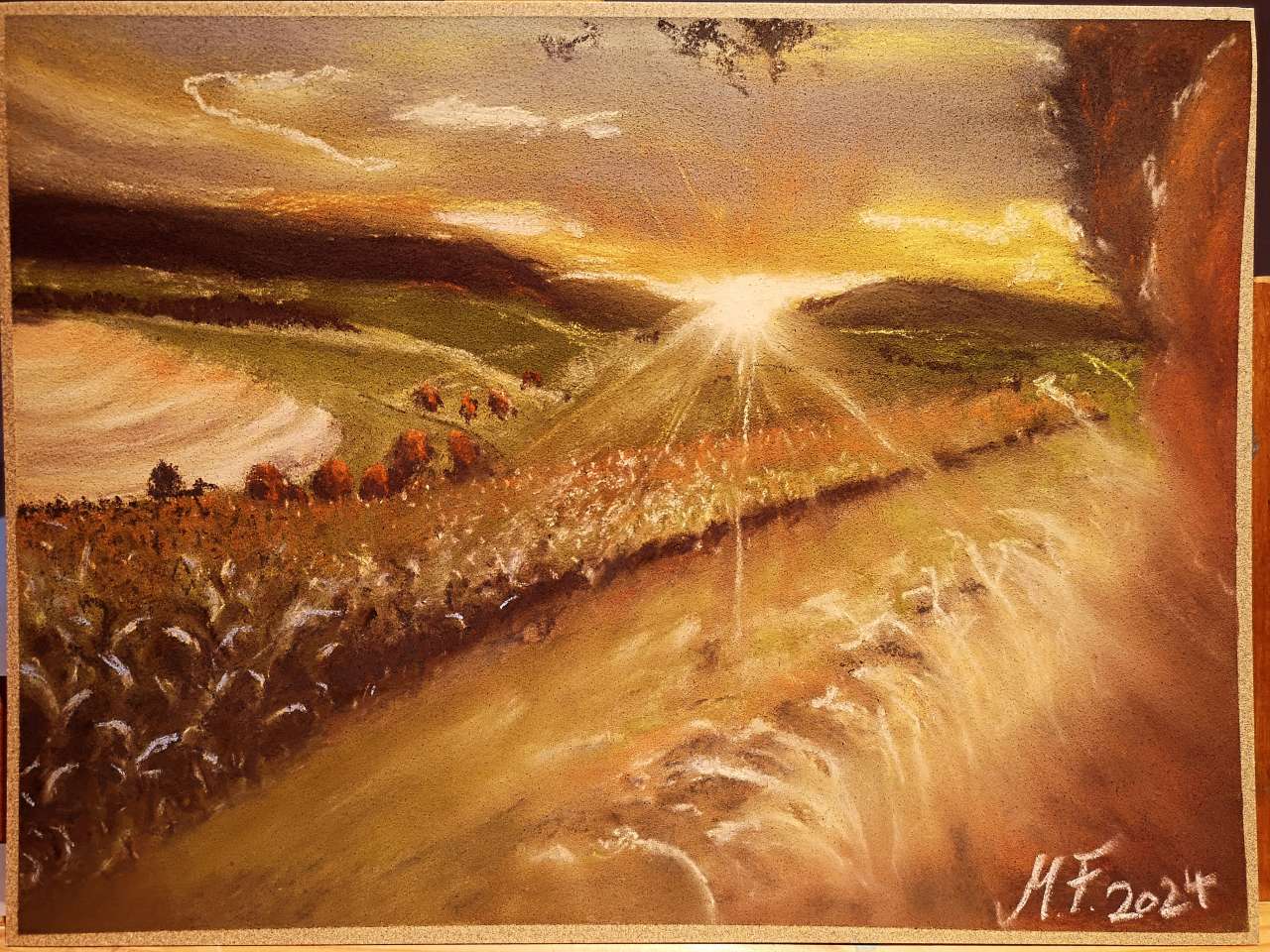 Wer mag kann den Umgang mit Pastellkreide auf Papier ausprobieren.