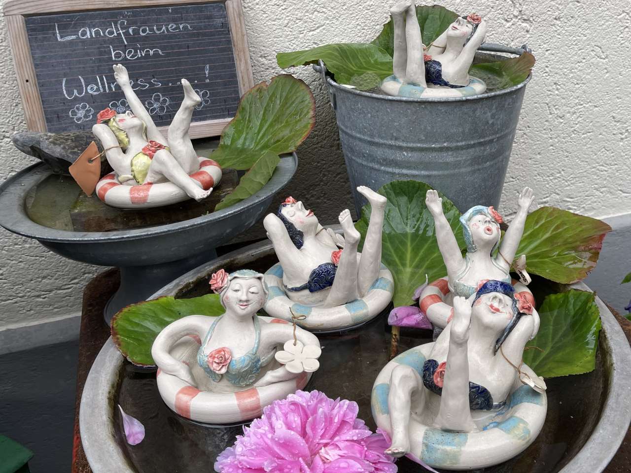 Freischaffende Keramikerin seit 1979 in Thayngen. Handgetöpfertes Geschirr und Garten Objekte. Nathalie Büchi stellt farbenprächtige Pferde Bilder aus.
