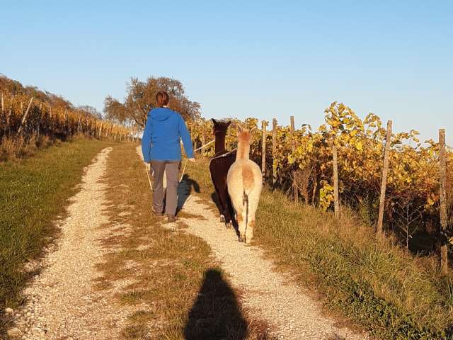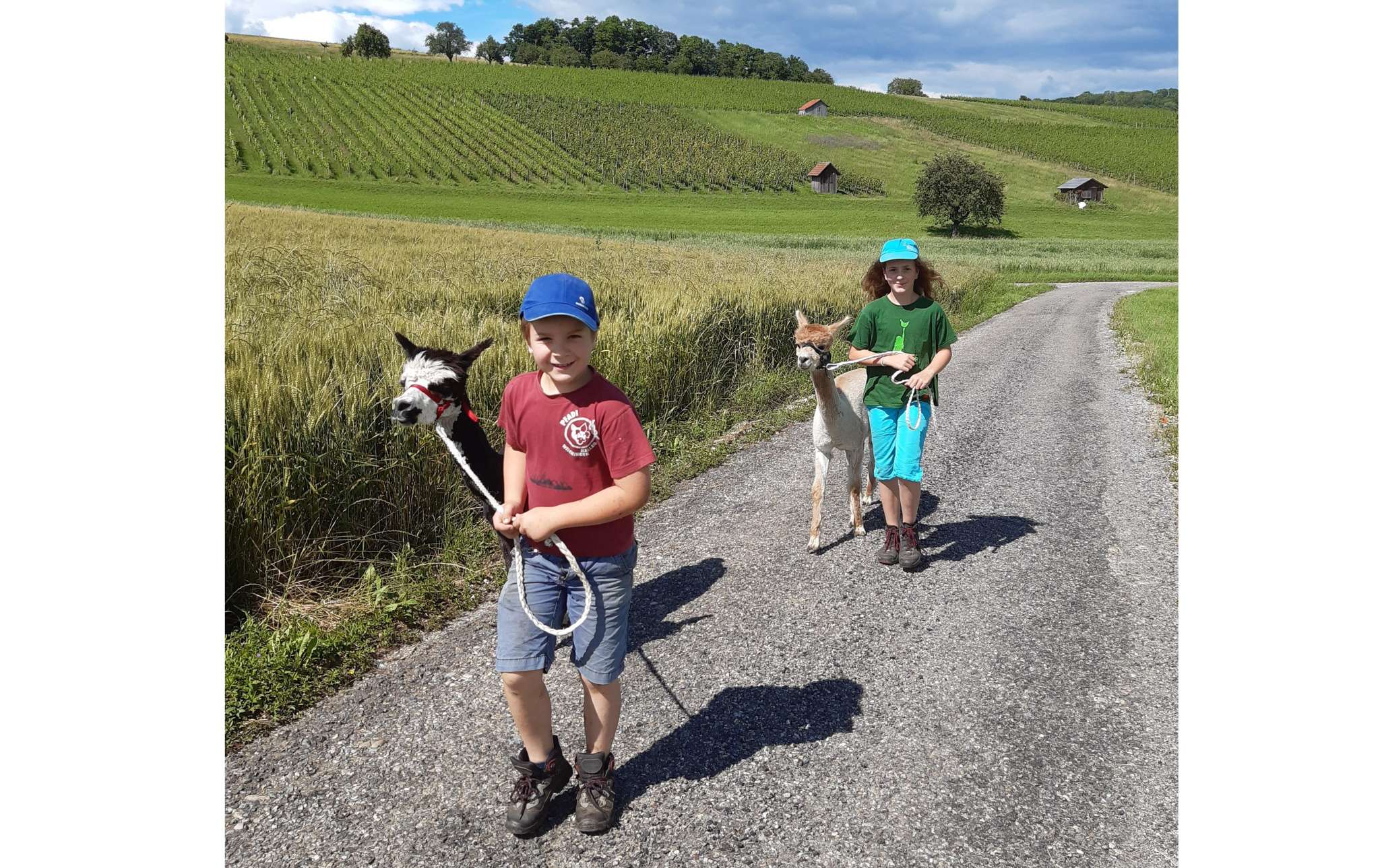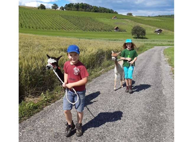 Im westlichsten Zipfel des Kantons Schaffhausen, im wunderschönen Chläggi sind wir zuhause. Viel Rebfläche prägen unser Landschaftsbild. Über die Jahre sind auf unserem Hof immer mehr verschiedene Tiere eingezogen. Zuletzt im Sommer 2021 zwei Alpakas. Sie sind die grosse Leidenschaft von mir, bereiten aber der ganzen Familie Freude. Mittlerweile ist die Herde auf sechs Tiere angewachsen. Damit auch Du diese feinfühligen und lieben Tiere kennenlernen kannst, biete ich Spaziergänge in unserer wunderbaren Natur an.