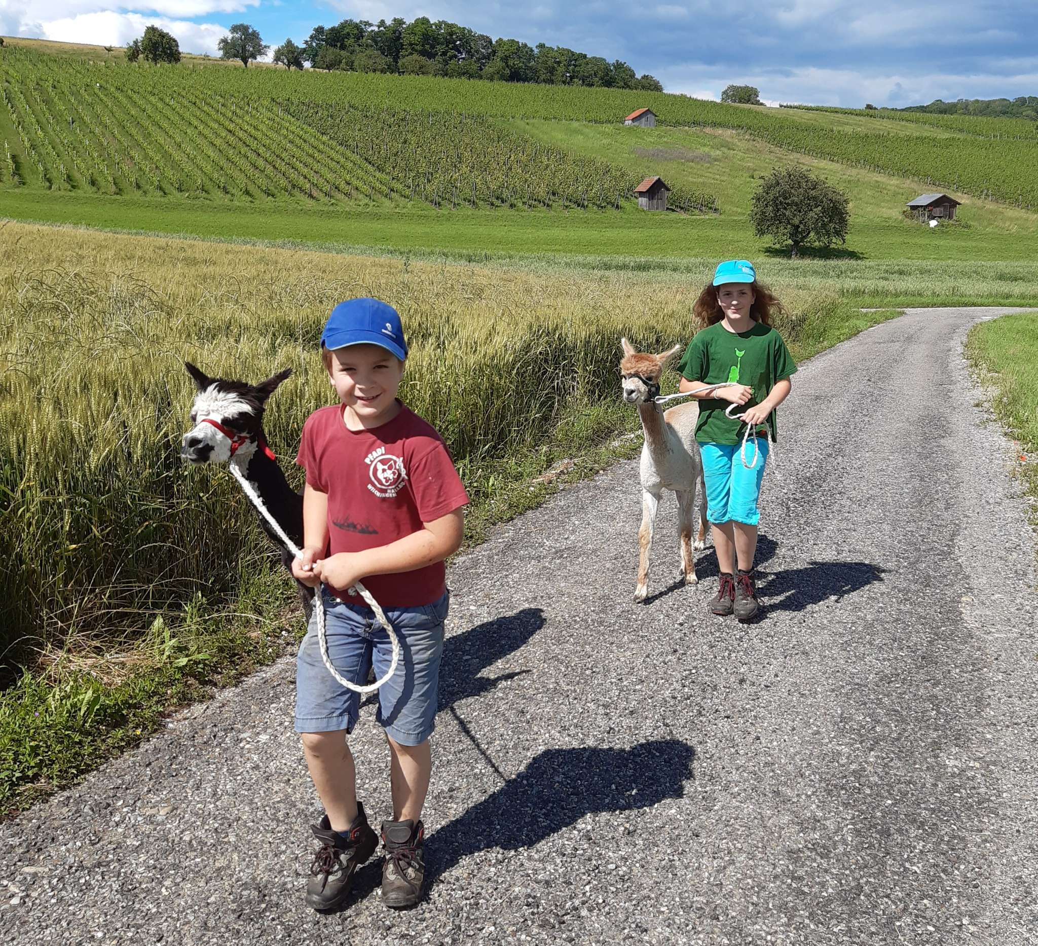 Geniessen Sie auf einem Spaziergang mit unseren Alpakas eine unbeschwerte Auszeit oder einfach einen gemütlichen Nachmittag mit Ihrer Familie.
