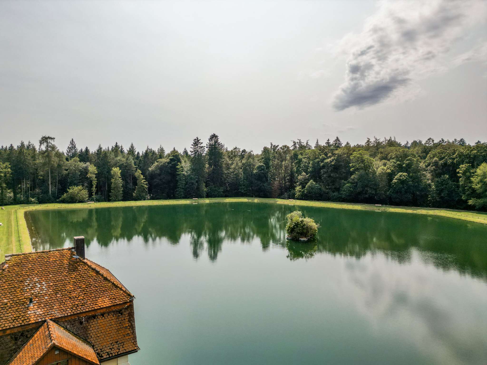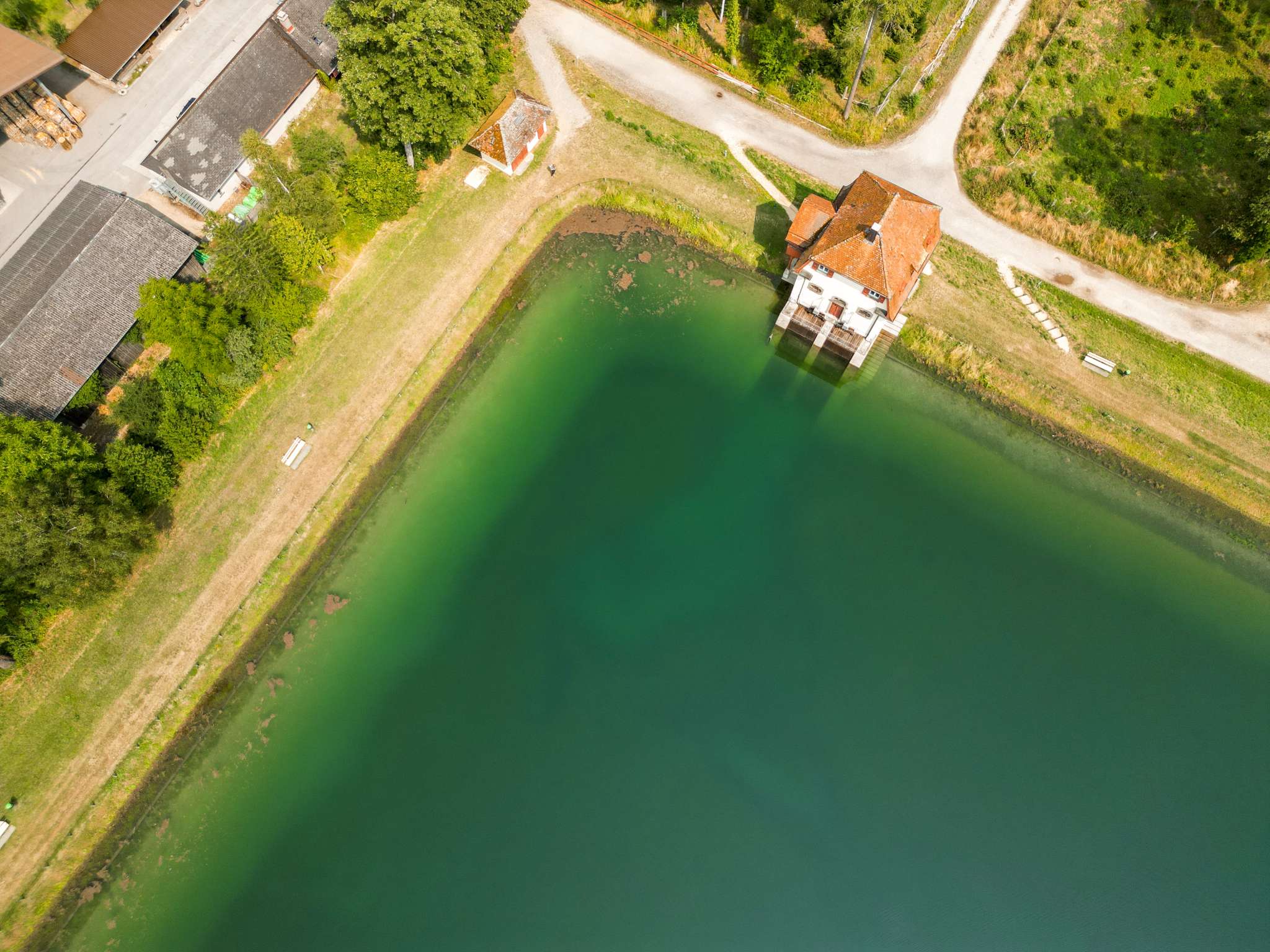 Der künstlich angelegte Weiher war 1907 das erste Pumpspeicherwerk der Schweiz und wurde dazumal praktisch in Handarbeit angelegt.