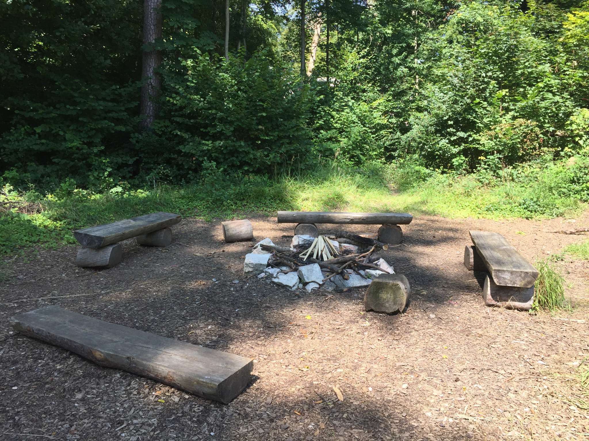Die Grillstelle Chöpferplatz hat eine schöne Feuerstelle jedoch ohne installierten Grill und mit Bänken rundherum.