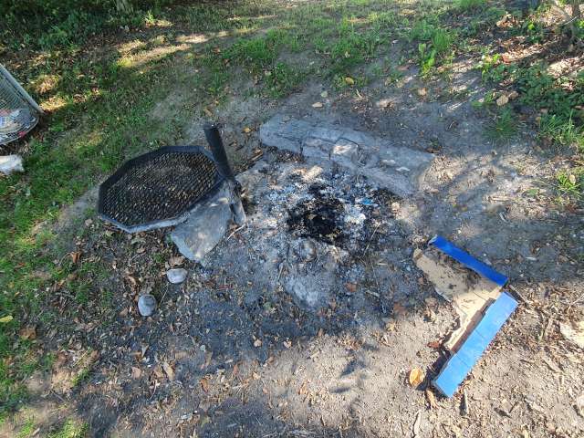 Es hat eine Feuerstelle und einen Tisch mit Bänken. Gleich daneben befindet sich eine Wiese mit einem Fussballfeld.