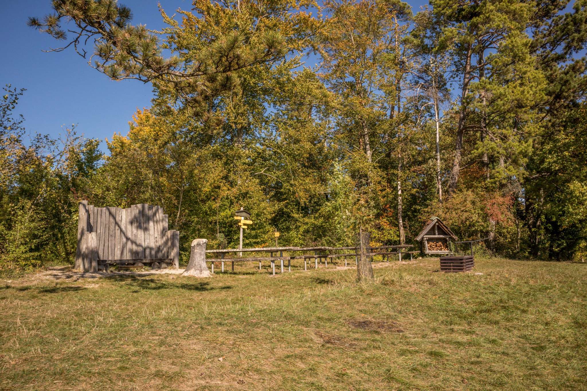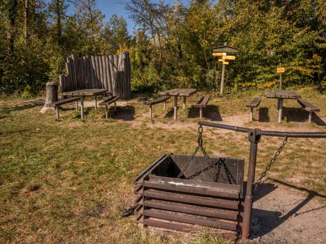 Eine Feuerstelle sowie vier Tische mit Bänken machen die Grillstelle zum perfekten Grillplatz für Gruppen. Zusätzlich hat es Feuerholz vor Ort (ohne Garantie).