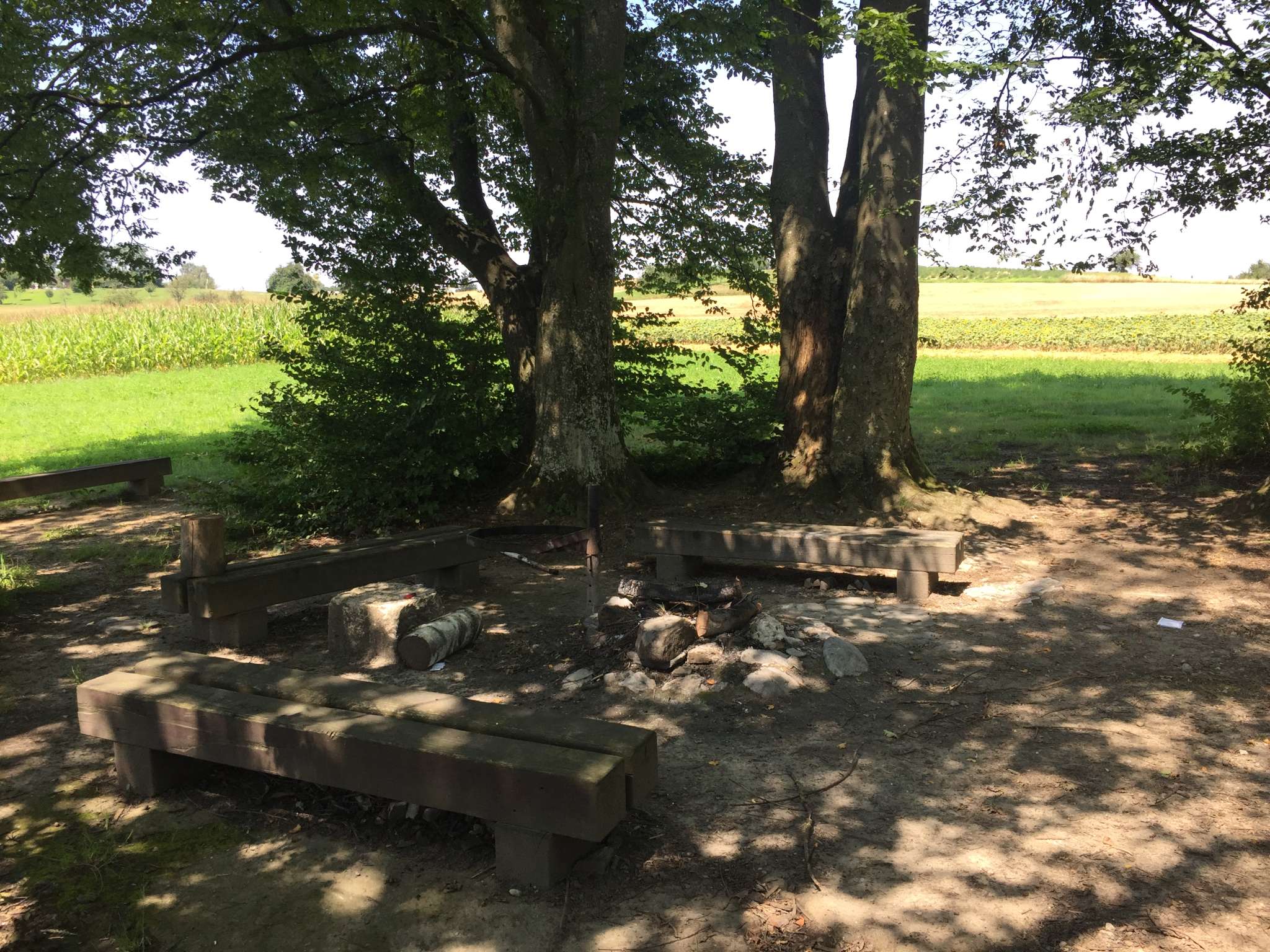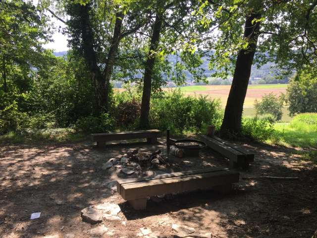 Die Grillstelle Trotte Peterschlatt hat eine Feuerstelle mit Bänken rundherum.