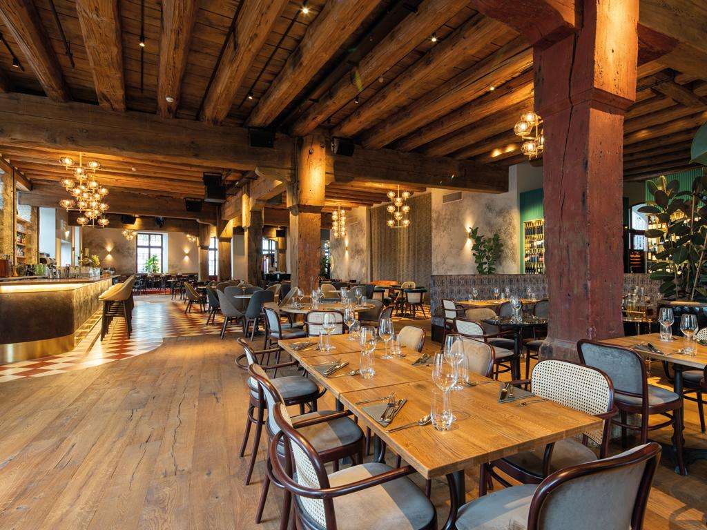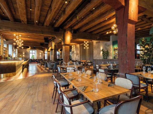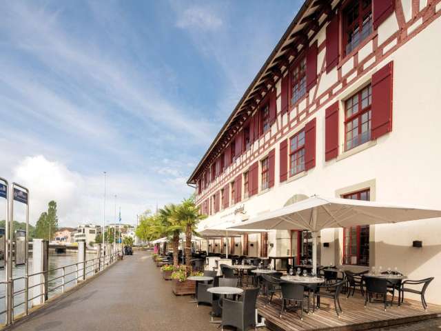 Das Restaurant besticht durch seine grosszügige Raumaufteilung mit verschiedenen Sitz- und Essbereichen und der grossen Bar. Geniesse bei schönem Wetter Deinen Kaffee auf der grosszügigen Terrasse direkt am Rheinufer. Wähle zum Lunch aus der Tageskarte oder eines der Mittagmenus und zum Dinner aus der vielfältigen Abendkarte. Es erwartet Dich eine regionale und saisonale Küche mit Schweizer Klassikern und Grillspezialitäten.