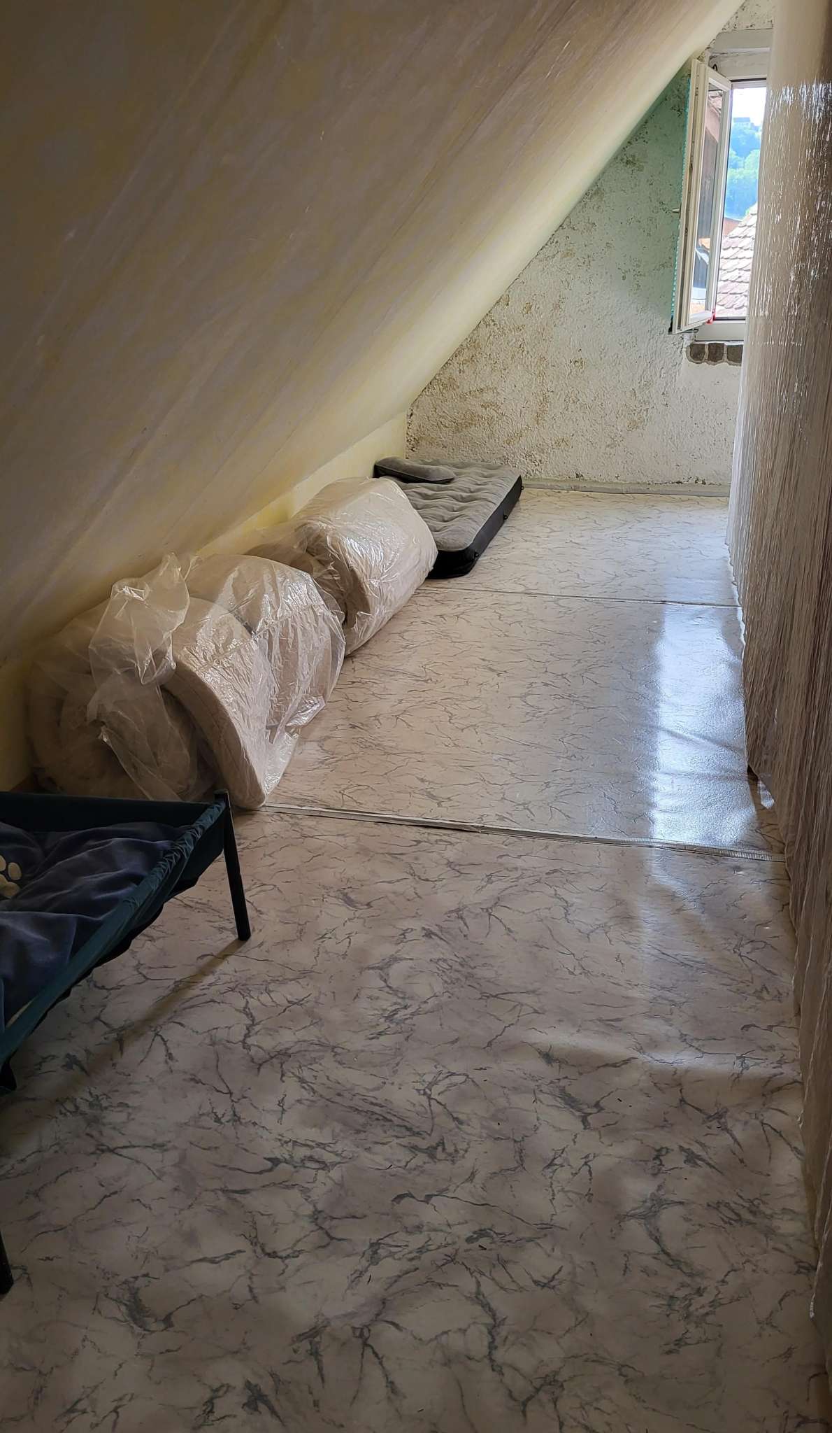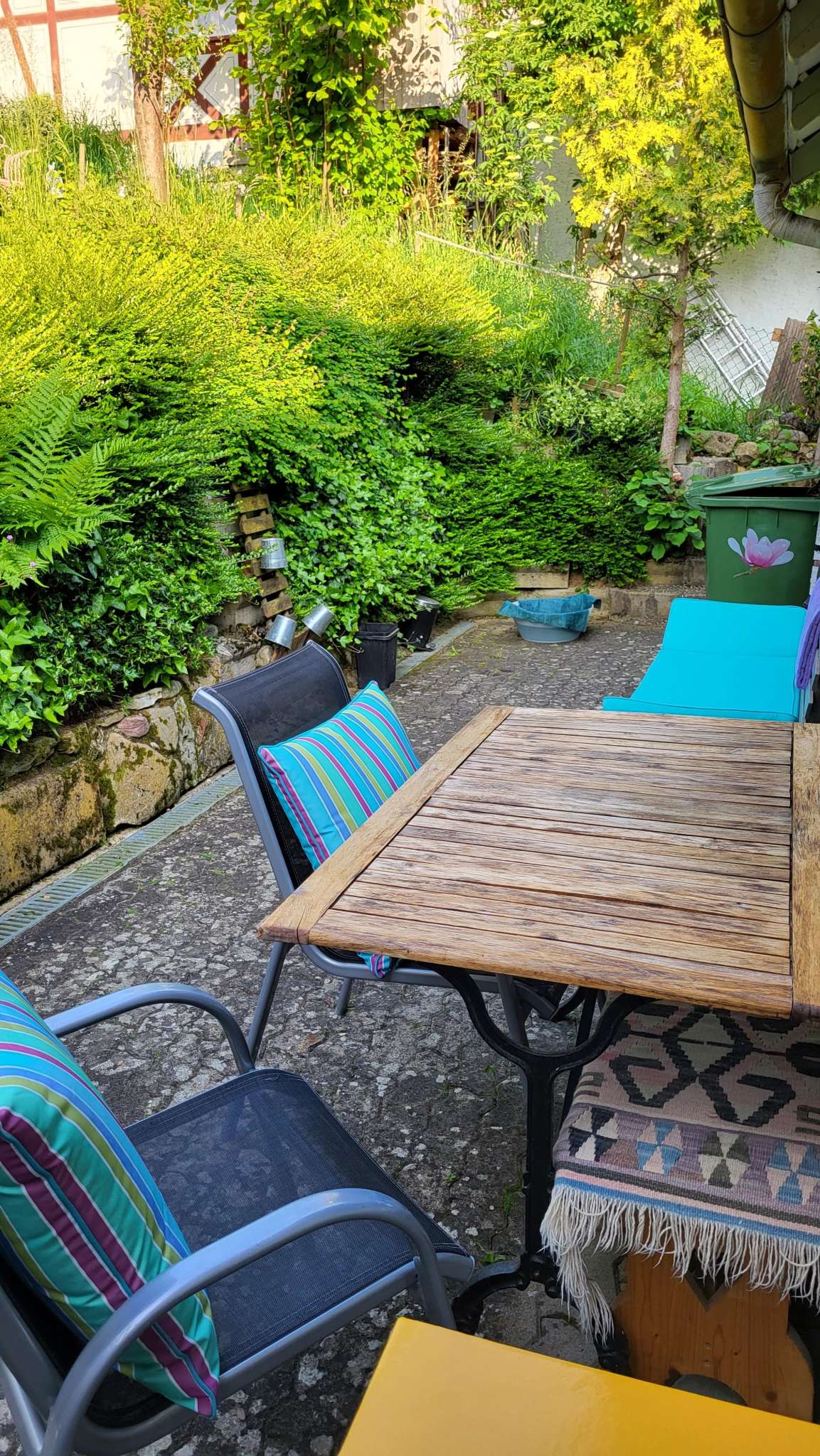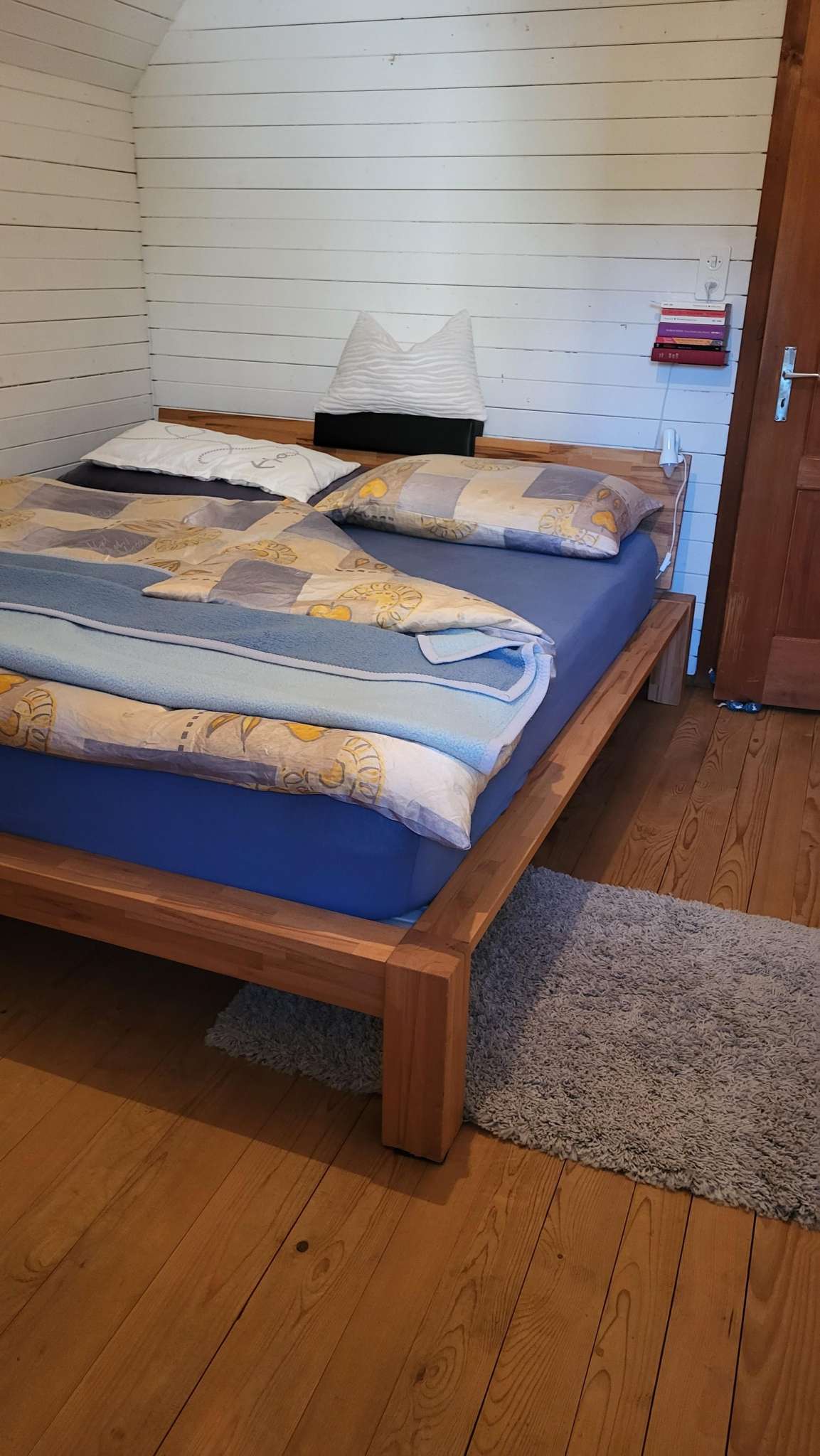 GästeZimmerBetten für max. 6 Personen. 1 DZ und 1 EZ 1. OG und 3 Matratzen 2. OG Dach via Raumspartreppe in gemütlichem Haus (erbaut um 1900) mit kleinem Garten/Sitzplatz und Gewölbe Keller im alten und ruhigen Dorfkern.
