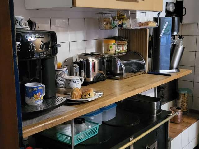 Kleines Frühstück (Selbstbedienung), Brunch (Samstag/Sonntag auf Wunsch). Bad/Dusche/WC, WC separat, Küche, eigener Essbereich, Waschmaschine (kein Tumbler), WLAN/TV/Radio, Gartensitzplatz, kleiner idyllischer Naturgarten mit Obstbäumen, Hofplatz vor Gewölbe, Parkplatz.