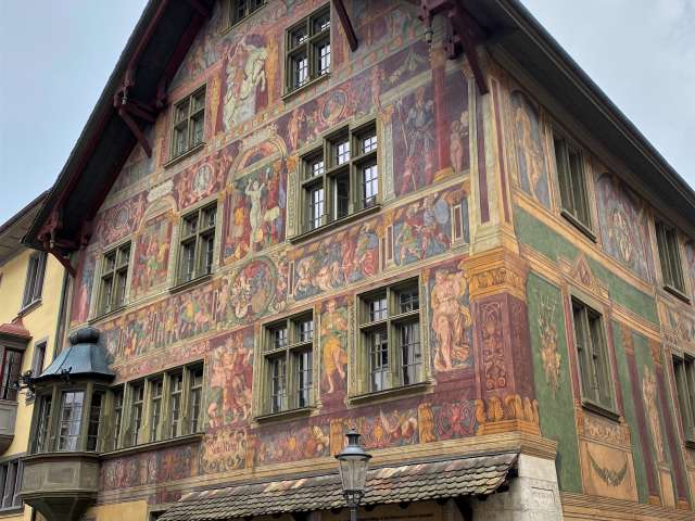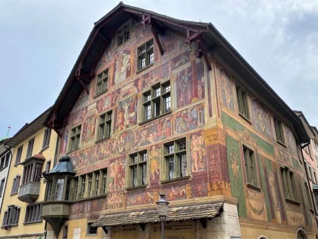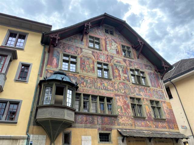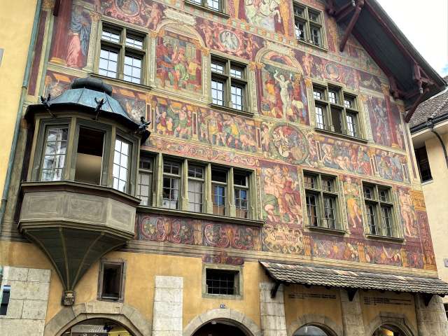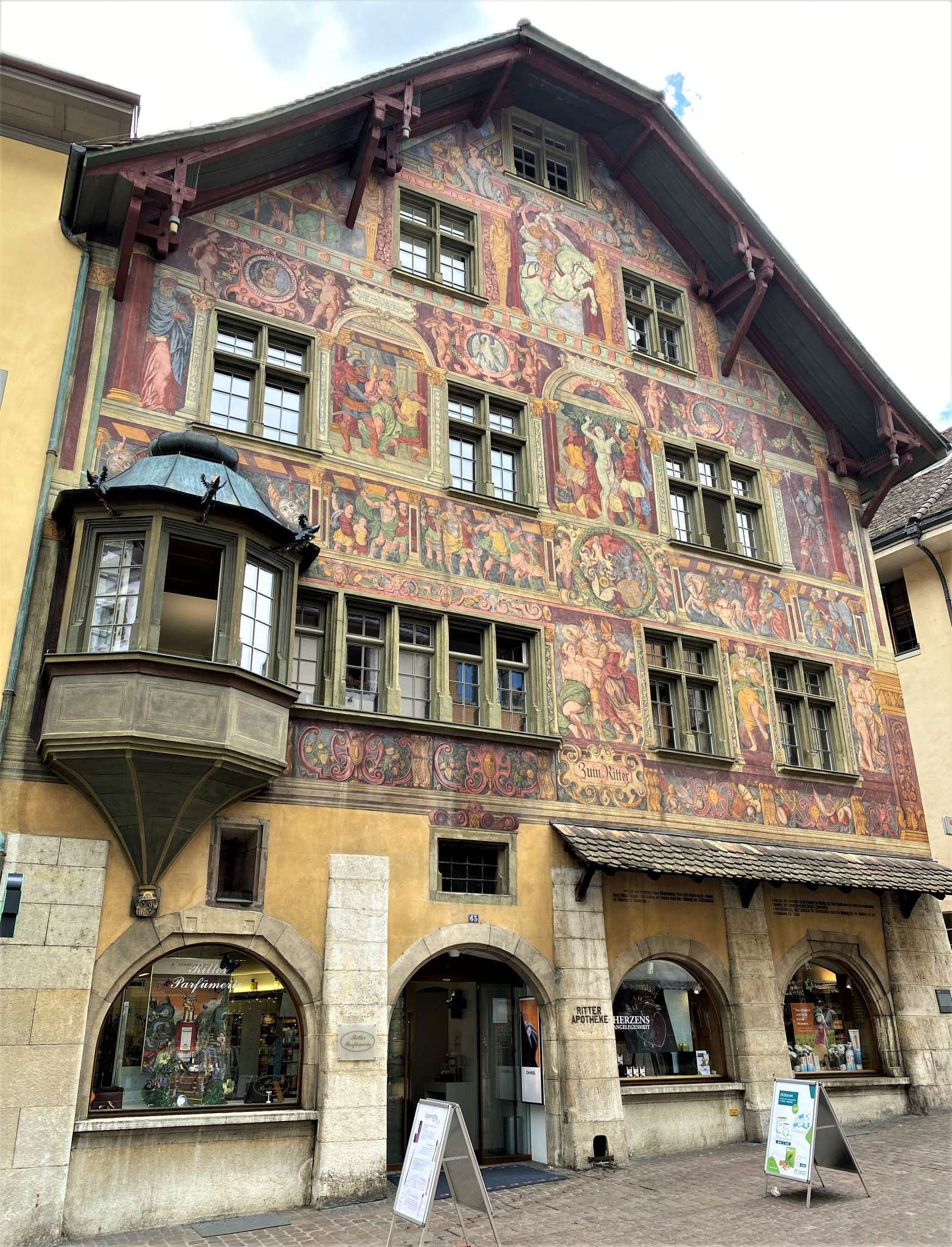 Das Haus zum Ritter ist eines von drei noch erhaltenen bemalten Häusern in unserer Stadt.