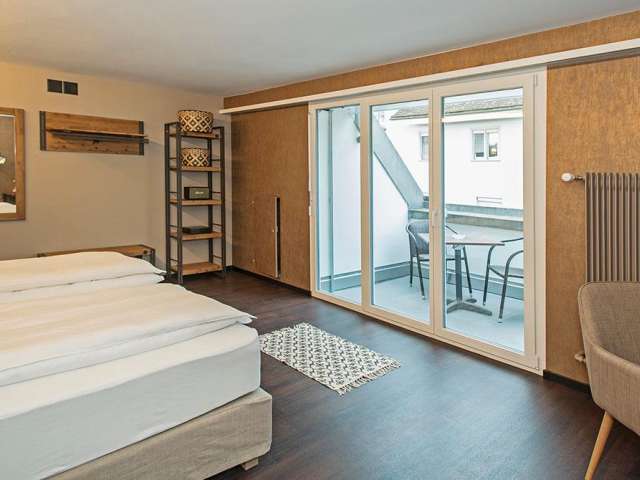 Dieses traditionelle Hotel geht auf das Jahr 1654 zurück und begrüsst Sie in der Altstadt von Schaffhausen. Sie wohnen hier nur 5 Gehminuten vom Bahnhof entfernt. Im HOTEL 2B befinden sich auch das Restaurant US-MEX sowie eine Bar. Alle Zimmer wurden 2017 renoviert. Jedes der acht Zimmer hat einen eigenen, unverwechselbaren Style. Eines haben die Zimmer gemeinsam: Sie bieten Komfort und sind ein perfekter Rückzugsort nach einem anstrengenden Business-Day oder einem aufregenden Stadt-Trip. Im Restaurant werden Ihnen mexikanische und amerikanische Gerichte wie Fajitas und Burger serviert. Im ruhigen Innenhof lädt ein Wintergarten zum Verweilen ein.