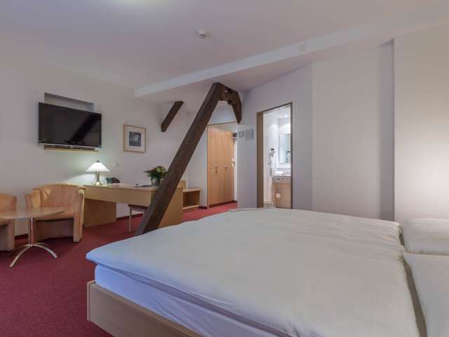 Ein feinbürgerliches Restaurant, mehrere Seminarräume, eine Sauna und kostenfreie Parkplätze direkt vor dem Haus runden das Angebot ab.