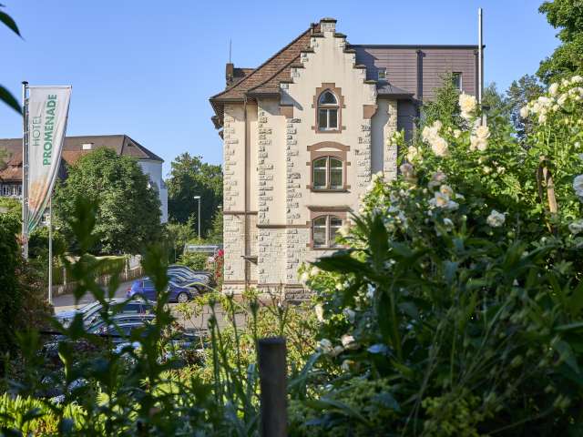 Unser Garten- und Bikerhotel mit der familiären Note liegt nur wenige Gehminuten vom Bahnhof und der Stadt Schaffhausen entfernt, umgeben von einer grünen Parkanlage.