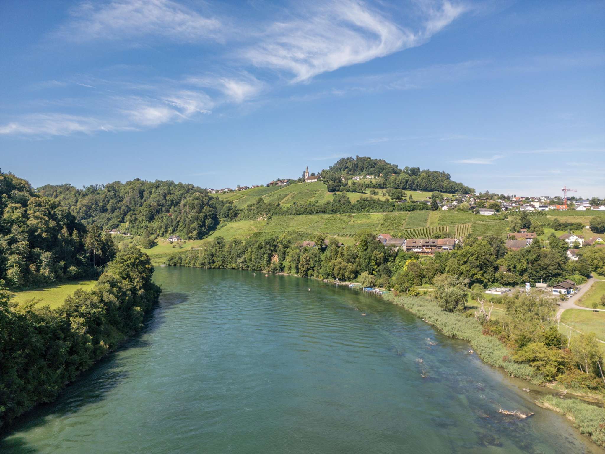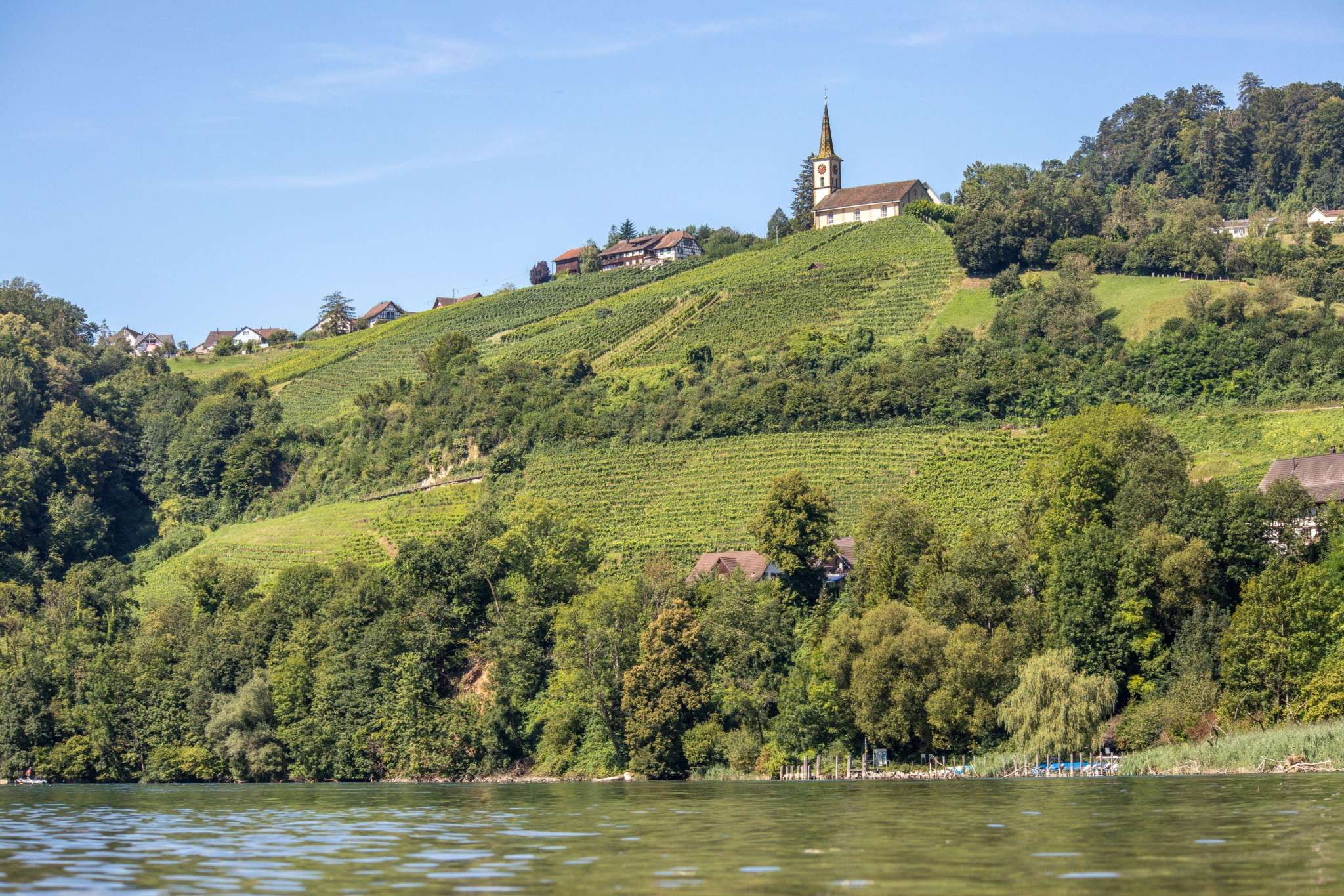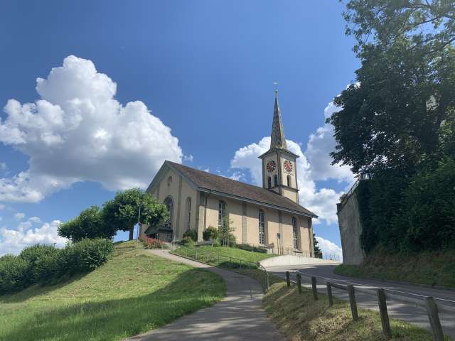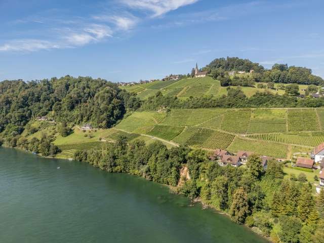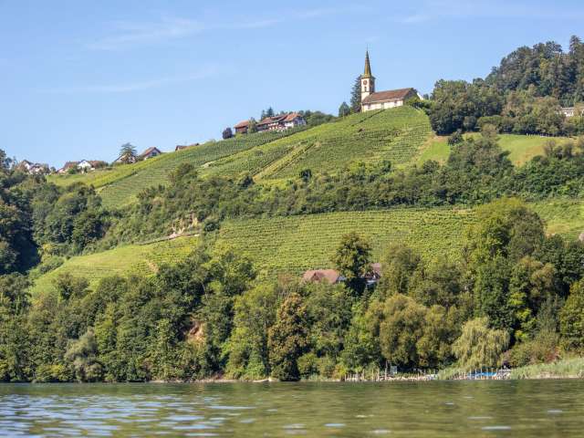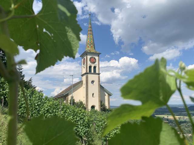 Erst seit 1850 steht die Kirche von Rüdlingen und Buchberg an ihrem ausgesucht schönen Ort zwischen den beiden Dörfern mit einer einmaligen Aussicht auf den Rhein und das Flaachtal.