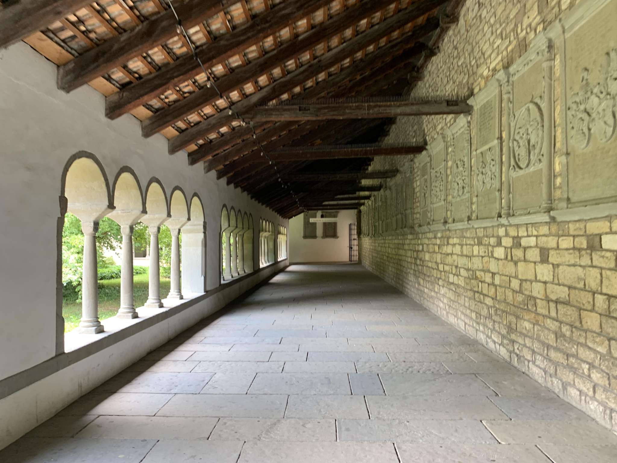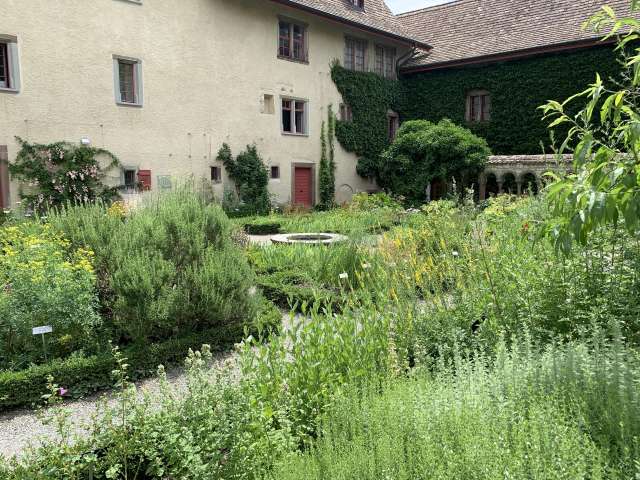 Die einstige Benediktinerabtei Allerheiligen mit der um 1106 geweihten Klosterkirche und dem Münsterturm aus der 2. Hälfte des 12. Jahrhunderts zählt zu den wenigen, gut erhaltenen, romanischen Klosteranlagen der Schweiz. Um 1090 legte man die Grundmauern zu einem grossen, fünfschiffigen Münster. Der Bau blieb aber in den Fundamenten stecken und an seiner Stelle realisierte man das heutige Münster. Der Münsterturm wurde um 1150 errichtet, der Turmhelm ist spätgotisch. 1524 wurde die Benediktinerabtei aufgehoben und das Münster zur Pfarrkirche. Heute ist das Münster Gottesdienstraum der evangelisch-reformierten Kirchgemeinde Schaffhausen-Münster und dient ausserdem als Konzertkirche. Kreuzgang zu Allerheiligen (12./13. Jh.) Der grösste Kreuzgang der Schweiz. Teils romanisch 12. Jh., teils gotisch 13. Jh., umschliesst er den romantischen, bezaubernden Kreuzganggarten, den sogenannten «Junkerfriedhof», in dem von 1582 bis 1874 hohe Schaffhauser Magistraten wie Bürgermeister, Ratsherren, Pfarrer und andere verdiente Bürger und Bürgerinnen beigesetzt wurden.