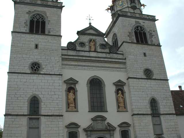 Das Hauptthema der Kirche ist Maria. Die Deckenfresken - die der Tessiner Francesco Giorgoli malte - sind immer noch in ihrer ursprünglichen Frische erhalten. Das prächtige Chorgitter wurde von den Konstanzer Schlossern Allweiler und Scheuermann errichtet.