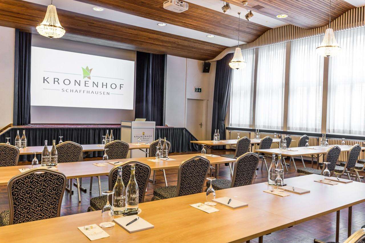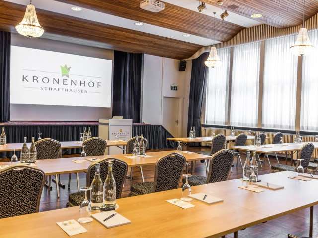 Schaffhausen ist der lebendige Mittelpunkt der Region – und der Kronenhof ein Ort der Begegnung. Der Munot Saal eignet sich für Anlässe aller Art und lässt sich dank flexibler Raumgestaltung individuell auf verschiedene Gruppengrössen und Bedürfnisse abstimmen – ob privat oder geschäftlich.