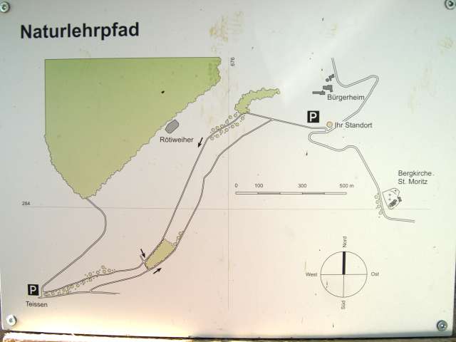 Beim Rastplatz «Tisch + Bänk» mit seinen schattigen Kastanienbäumen beginnt der lehrreiche Höhenweg und führt über 2,6 km in westlicher Richtung zum «Teissen». Entlang der Strecke öffnet sich ein herrlicher Blick ins prächtige Klettgau. Bei guter Sicht präsentiert sich das ganze Alpenpanorama von den Österreicher bis zu den Berner Alpen.