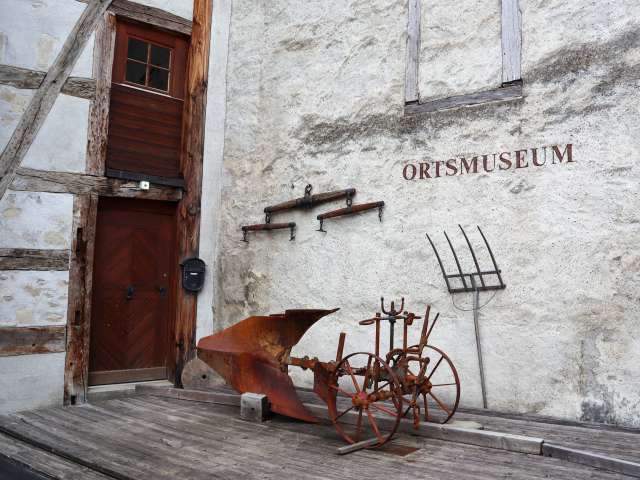 Wir besitzen eine grosse Sammlung von Gerätschaften aus Landwirtschaft, Rebbau und Forstwirtschaft, Gegenständen aus dem Haushalt, Trachten, Handwerksarbeiten, ganzen Werkstätten, antiken Küchen, Messapparaten und Werkzeugen.