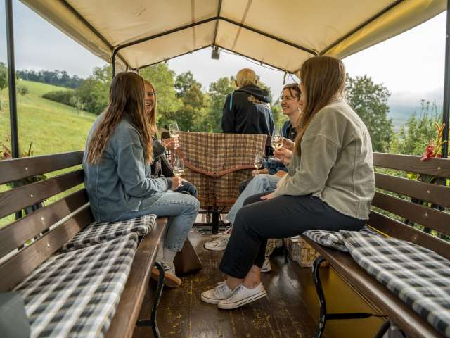 Geniessen Sie eine Pferdewagenfahrt durch die schönen Rebbergen im Schaffhauser Blauburgunderland.