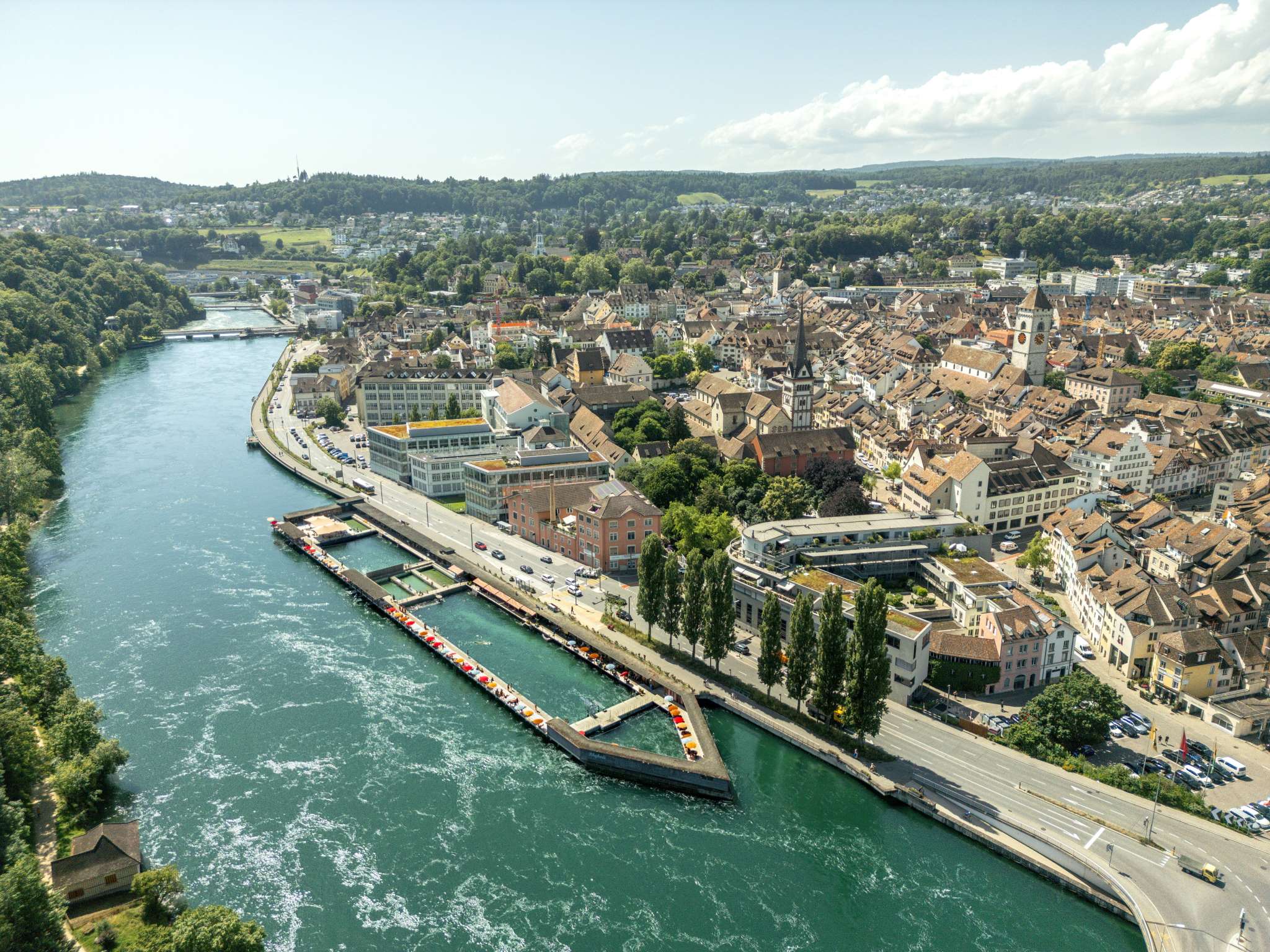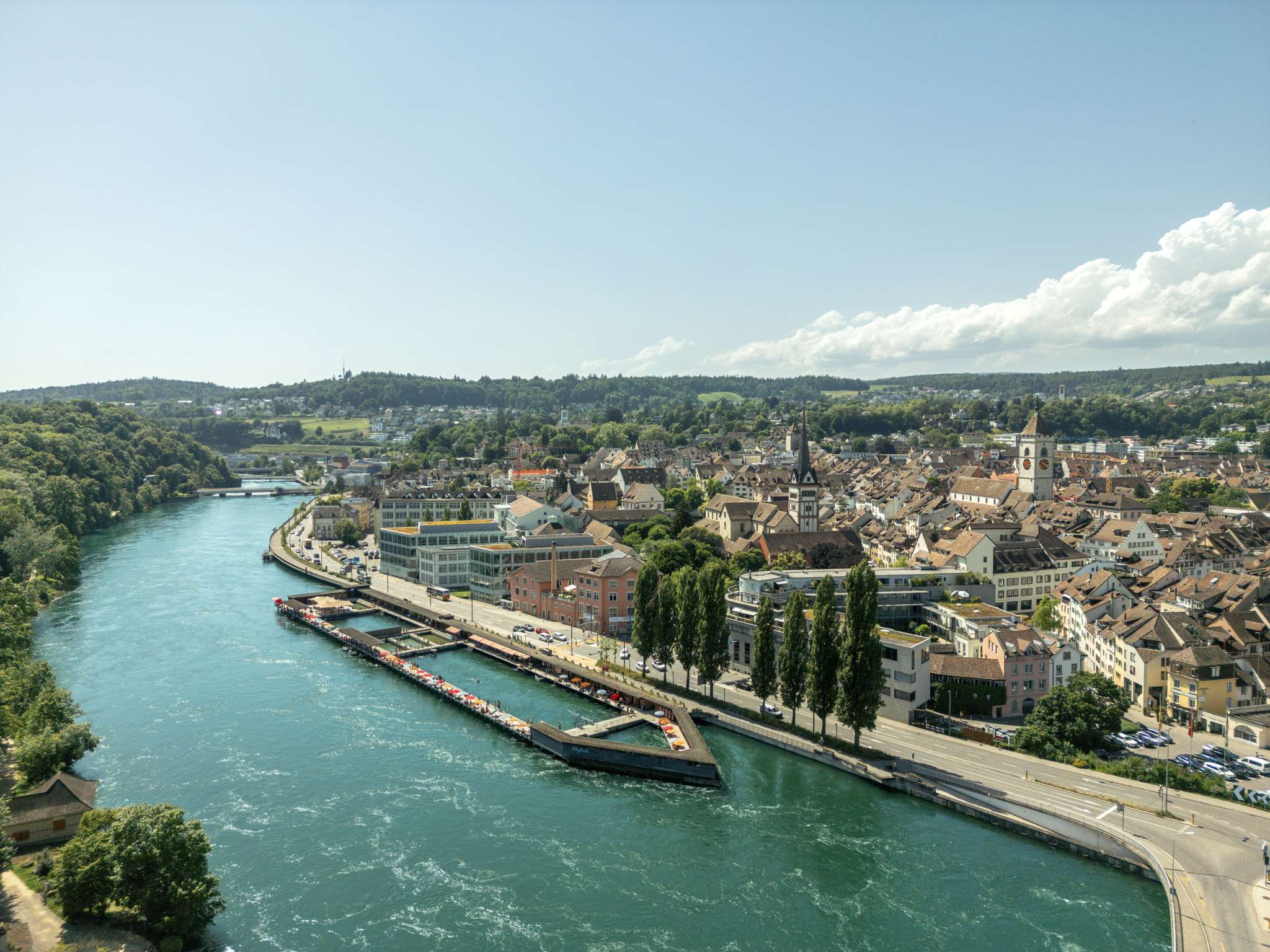 Seit 1870 stellt das grosse Schaffhauser Holzbad seinen Bug in die Rheinströmung unter dem Munot. Verantwortlich für den Bau des grössten noch erhaltenen Kastenbades der Schweiz (es soll gar die älteste Flussbadeanstalt Europas sein) war Stadtbaumeister Johann Gottfried Meyer. Durch die Stauung des Kraftwerkes ist der Pegelstand im Bad konstant. Schwimmer sollten jedoch beachten, dass die Strömung des Rheins bei grösserer Wassermenge schneller wird.