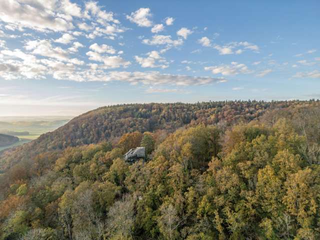 Am Südhang des Rossbergs in Osterfingen, auf einem schroffen Bergsporn, liegt die Burgruine Radegg.