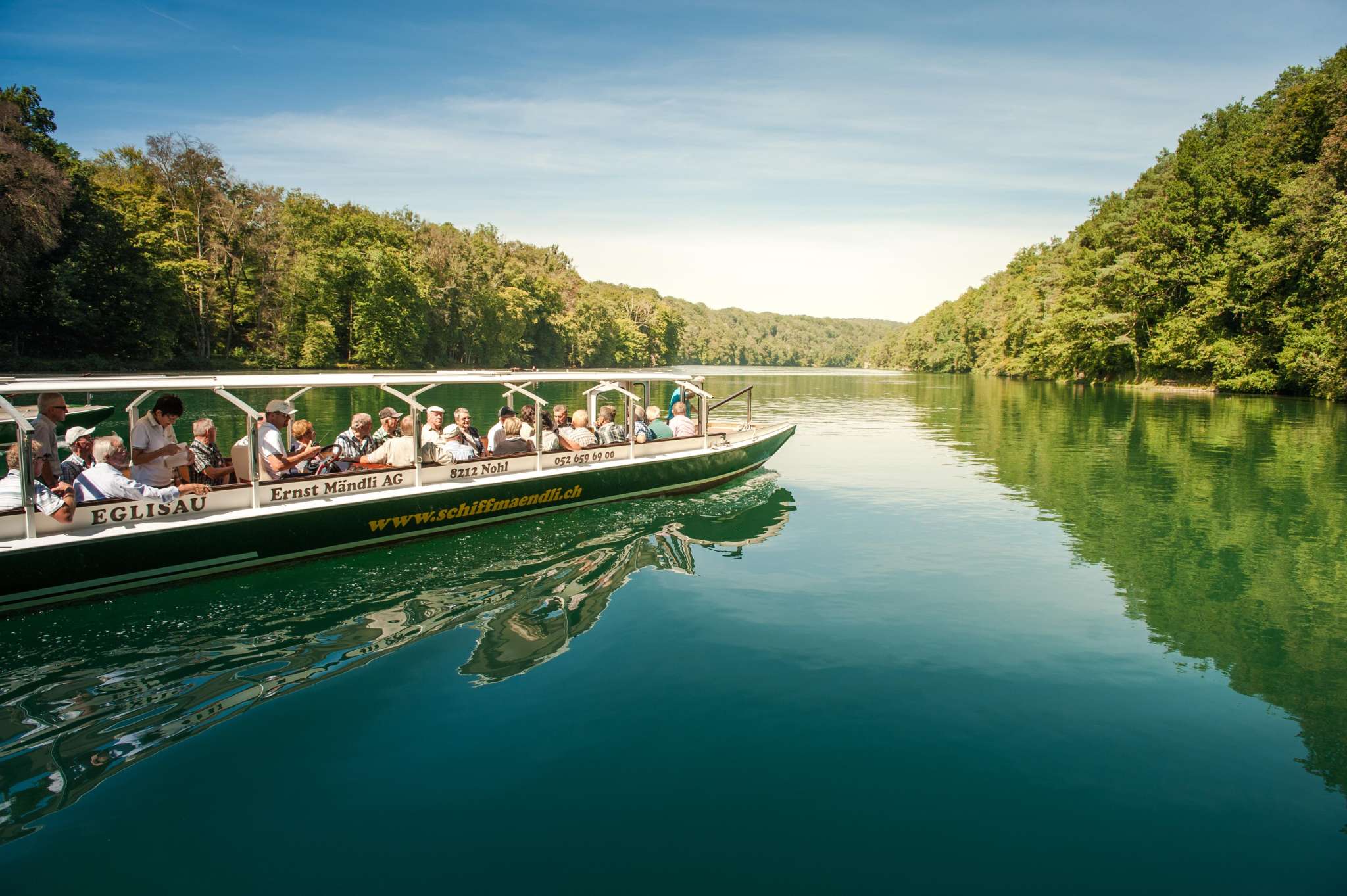 Erleben Sie den Rhein zwischen dem tosenden Rheinfall und Eglisau auf den Booten von «Schiffmändli». Ob allein oder in der Gruppe, bei unserem Sonntagsbrunch auf dem Schiff, einer aufregenden Schleusenfahrt oder einem gemütlichen Ausklang des Abends bei einem Glas Wein - wir bieten Ihnen umfangreiche Angebote rund um die Schifffahrt auf dem Rheinfall und dem «rheinischen Amazonas».