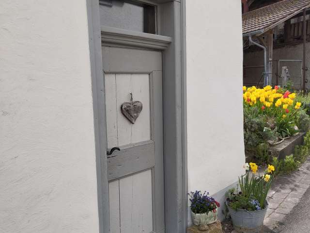 Zusammen mit dem gemütlichen kleinen Garten mit Steintisch und Sitzgelegenheiten fügt es sich wunderbar ins schöne Ortsbild von Wilchingen ein.