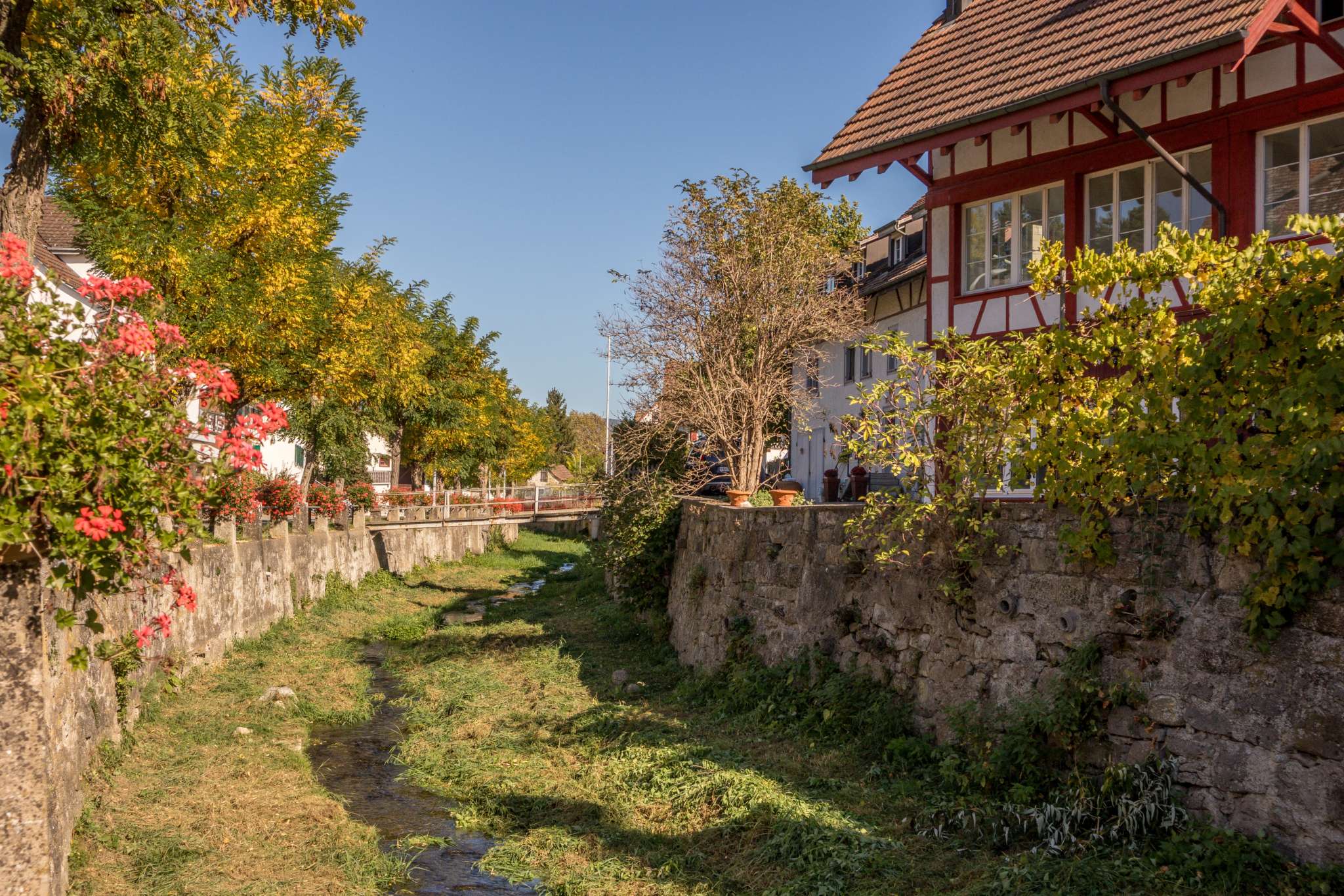 Der Dorfkern reizt mit seinen Fachwerkhäusern und wird dazu vom Dorfbach geprägt, der mitten durch Schleitheim fliesst, der über den Sommer mit Geranien und in der Adventszeit mit Christbäumen schön geschmückt wird.