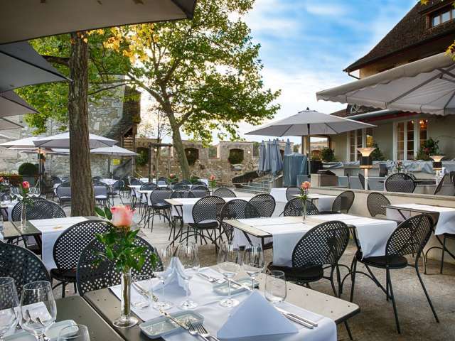 Im Tagesrestaurant «Castello» sorgt der ehemalige Bannersaal mit seinem heimeligen Kamin und der grossen Terrasse für eine stimmungsvolle Szenerie. Geniesse köstliche Spezialitäten mit dem Fokus auf Regionalität und Saisonalität in geschichtsträchtiger Kulisse. Im «Bleulersaal» wirst Du abends kulinarisch mit abwechslungsreichen Kreationen verwöhnt. Der abendlich beleuchtete Rheinfall rundet das Erlebnis ab.