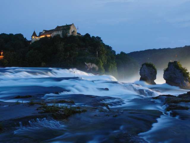 Beeindruckend sind sowohl der Ausblick auf den tosenden Rheinfall als auch die historischen Gemäuer des 1200 Jahre alten Schlosses, das zum Kulturerbe vom Kanton Zürich zählt.