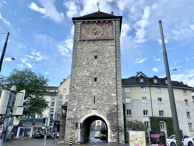 Das Schwabentor in der Schaffhauser Altstadt wurde 1361 erstmals als "Neuturm" urkundlich erwähnt. Es bildete gegen die Schwaben den Nordabschluss der mittelalterlichen Stadtbefestigung. Heute gelangt man durch das Schwabentor in die Vorstadt. Auf der westlichen Seite des Schwabentors ist noch ein Stück der alten Stadtmauer mit Wehrgang und dem Finsterwaldturm als Eckturm erhalten geblieben.