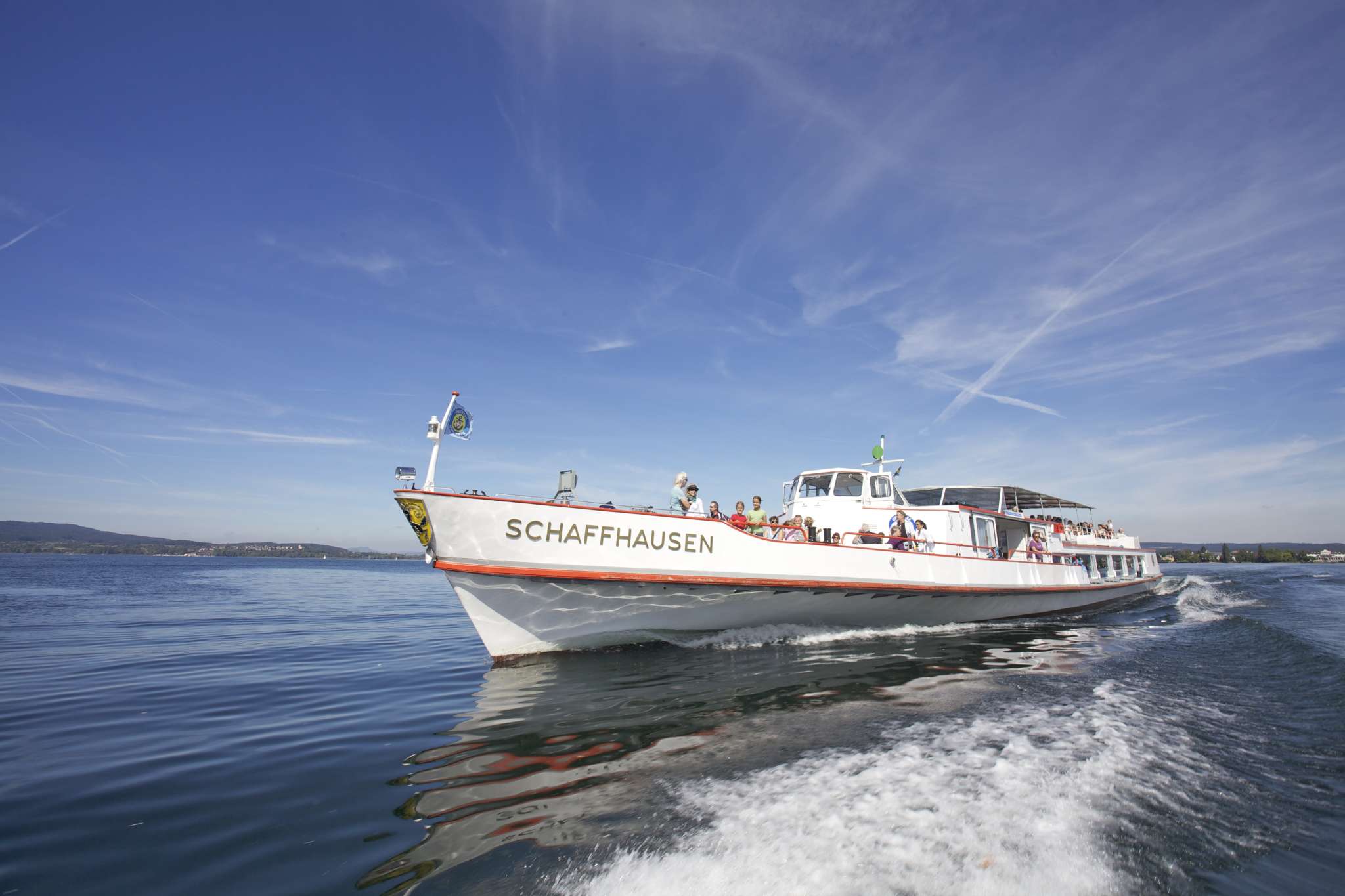Erleben Sie unvergessliche Momente an Bord und entdecken Sie einzigartige Schätze und Ausflugsziele vom Bodensee bis zum Rheinfall - auf der schönsten Stromfahrt Europas.