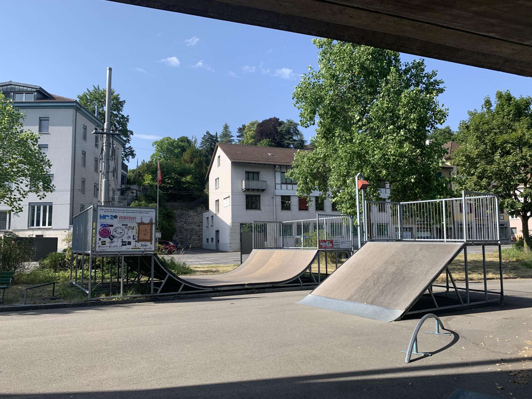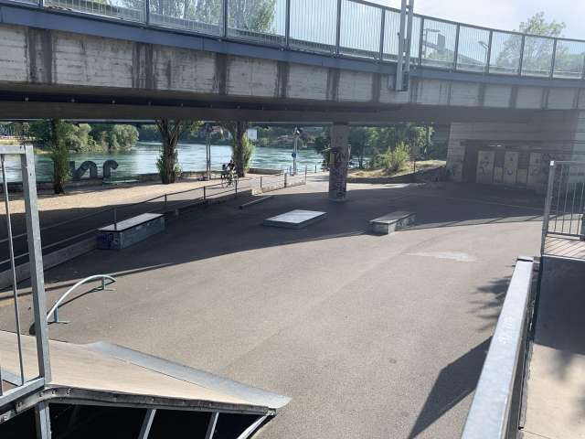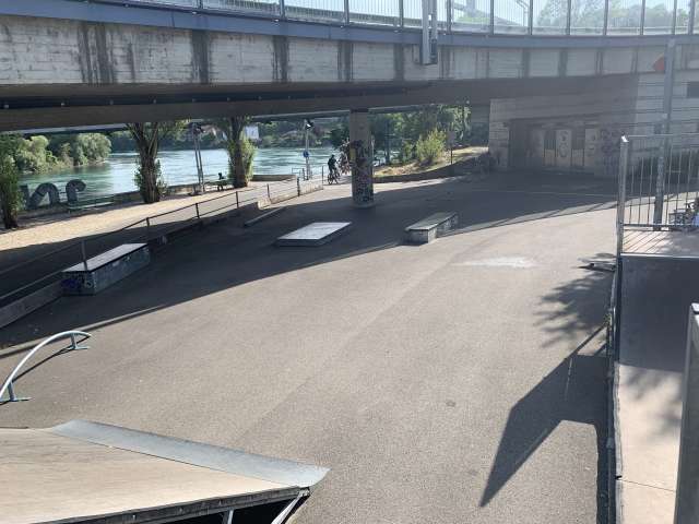 Direkt am Rhein bei der Autobahnbrücke N4 liegt dieser Skatepark.