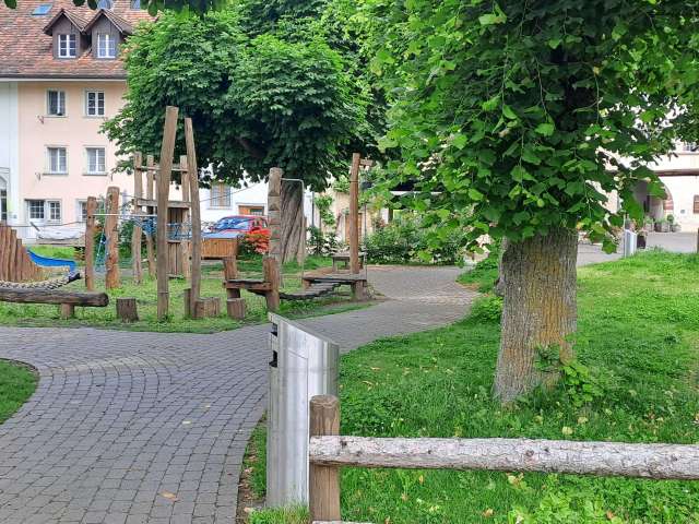 Inmitten des Städtli, zwischen Hintergasse und Wettigraben, befindet sich der Spielplatz Falken. Neben diversen Spielelementen wie Netzschaukel, grosses Mühlespiel und einer Babyschaukel, finden Sie auch Tische mit Bänke.