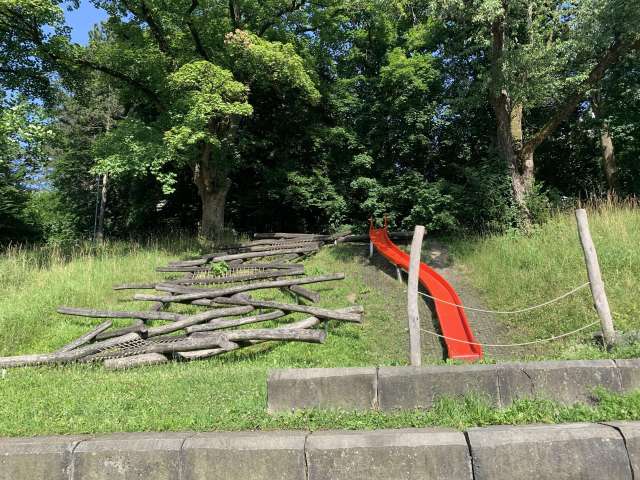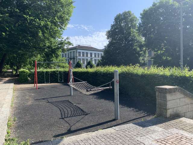 Kleiner Stadtspielplatz, hinter der Schulanlage Gega, der auch älteren Kindern Spielmöglichkeiten bietet.