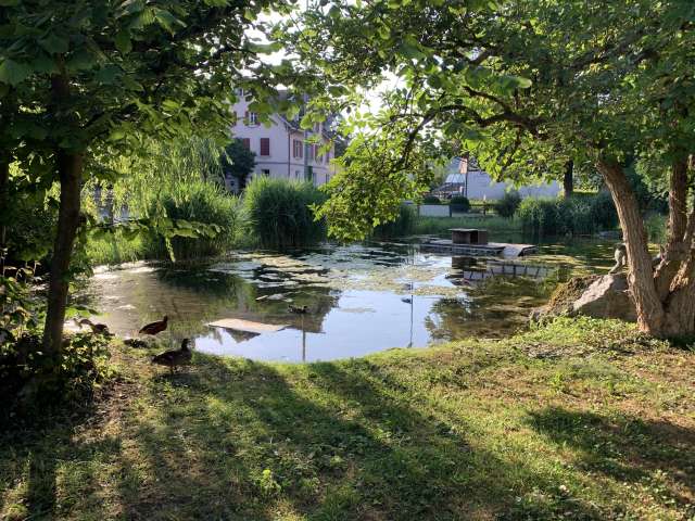 Der wunderschöne und grosse Spielplatz in Thayngen eignet sich perfekt für alle Kinder, um sich auszutoben. Die Anlage hat nicht nur diverse Spielgeräte, sondern auch einen kleinen Weiher mit Enten. Ein grosses Klettergerüst, eine Schaukel eine Rutschbahn, eine Wippe, eine Seilbahn und eine altes Fahrzeug laden zum Spielen ein. Direkt beim Spielplatz liegt die Bushaltestelle Weierli.