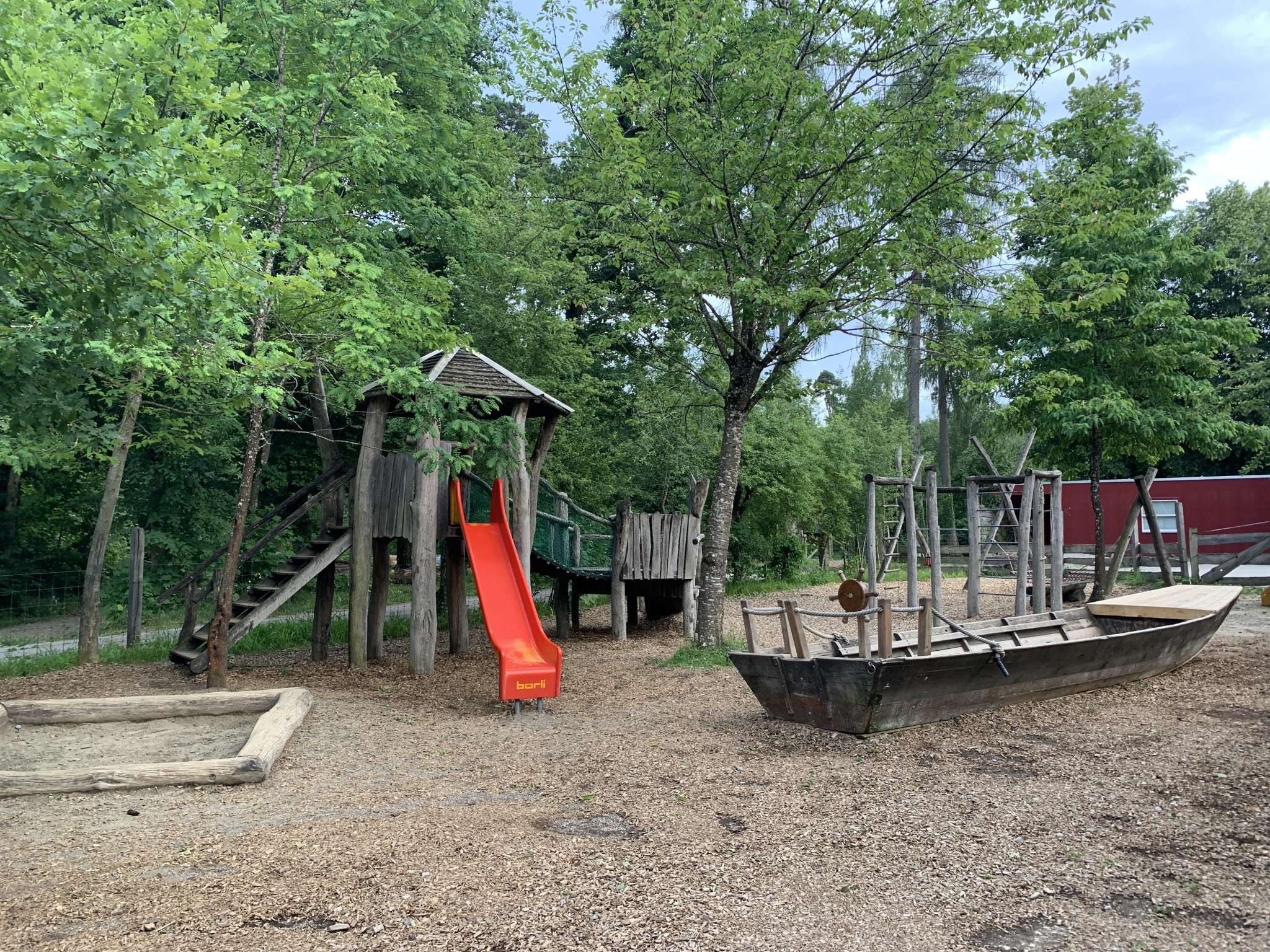 Dieser schöne Spielplatz liegt in der Nähe des Engeweiher umgeben vom Wald. Am Spielgerüst mit Rutschbahn, einer Schaukel und einer Seilbahn können sich die Kinder austoben. Ebenfalls hat es gleich beim Spielplatz eine Grillstelle sowie ein Pergola.