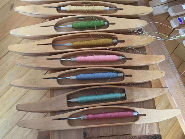 Wir werden am bereits eingerichteten Webstuhl unter Anleitung ein Tüechli weben.