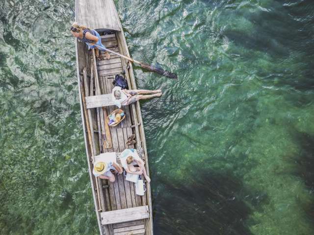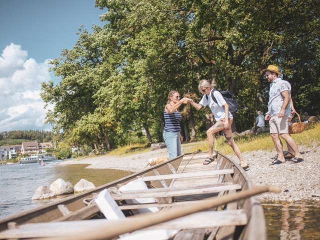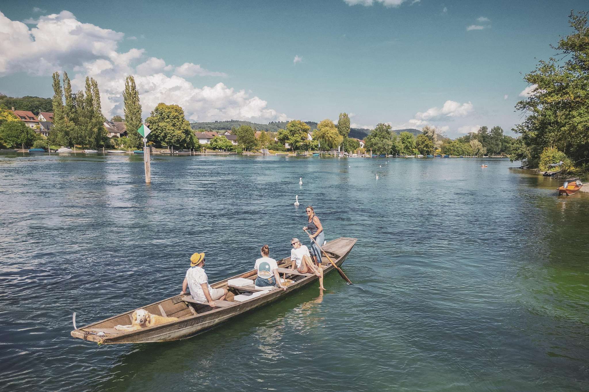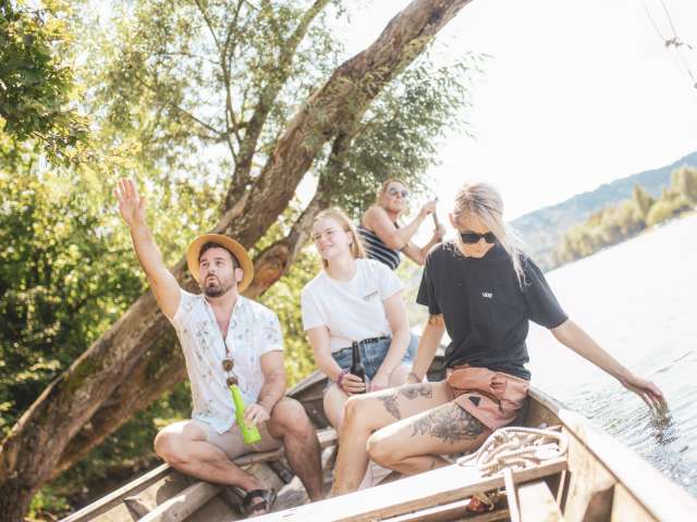Erlebe die Romantik des Hochrheins ohne Lärm und Hektik während einer Weidlingsfahrten mit Stachel und Ruder, ganz ohne Motor.