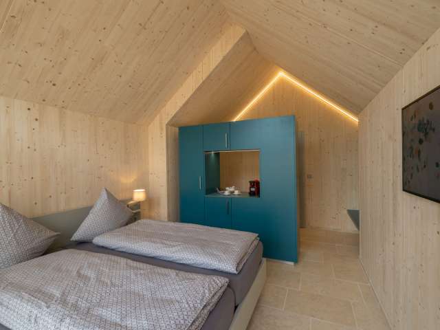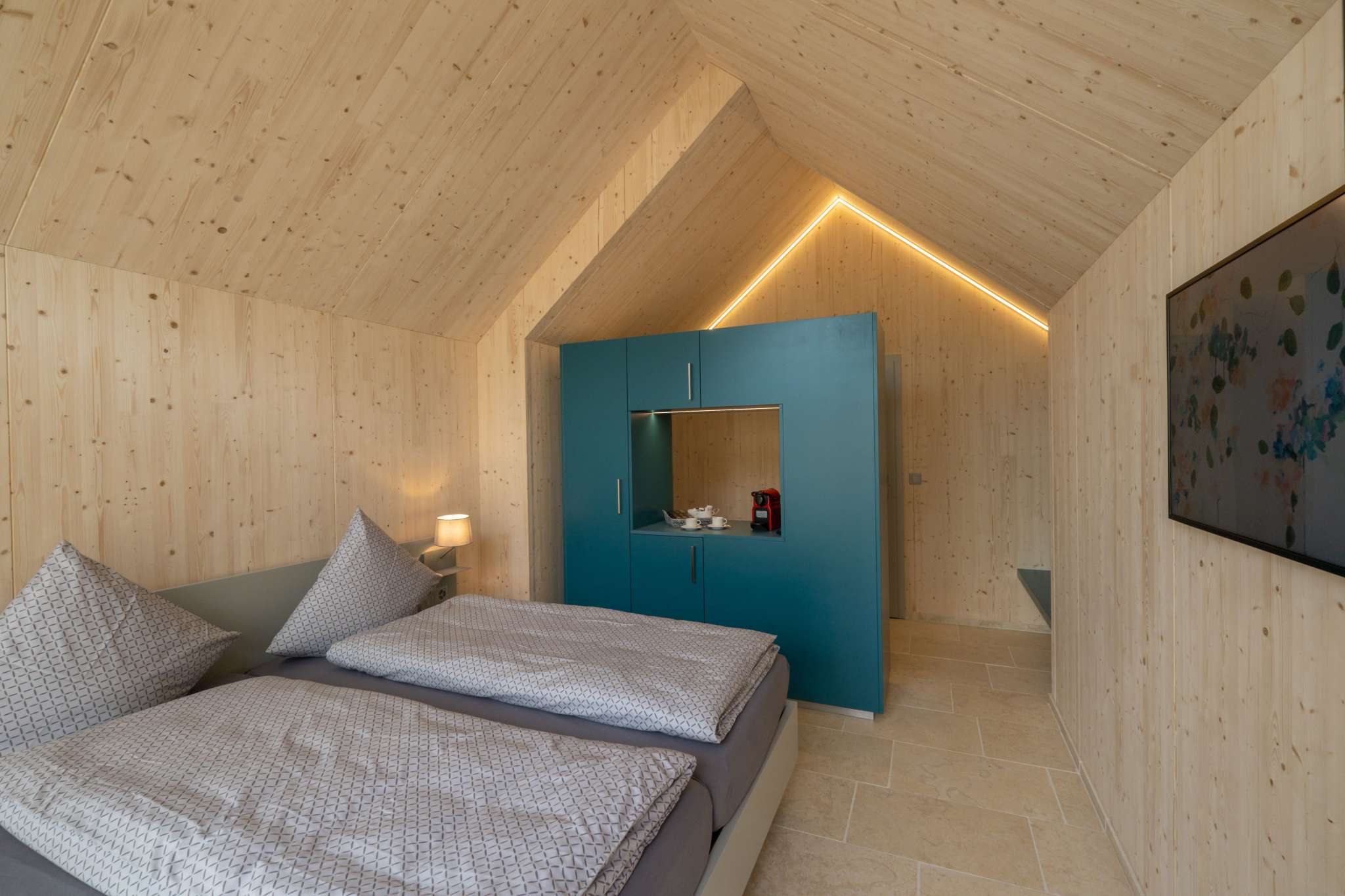 Wir bieten als weltweit einziges Hotel, den Gästen die Möglichkeit, in uralten Eichenfässern, in einem unseren neuen Hotel-Fasszimmer mit moderner Einrichtung zu übernachten, oder in unsere stylischen Räbhüüsli (Bungalow) zu geniessen.