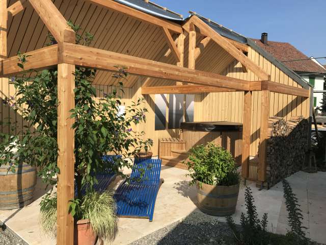 Eines davon als Badhüüsli mit Whirlpool. Entspannung ist hier unumgänglich!