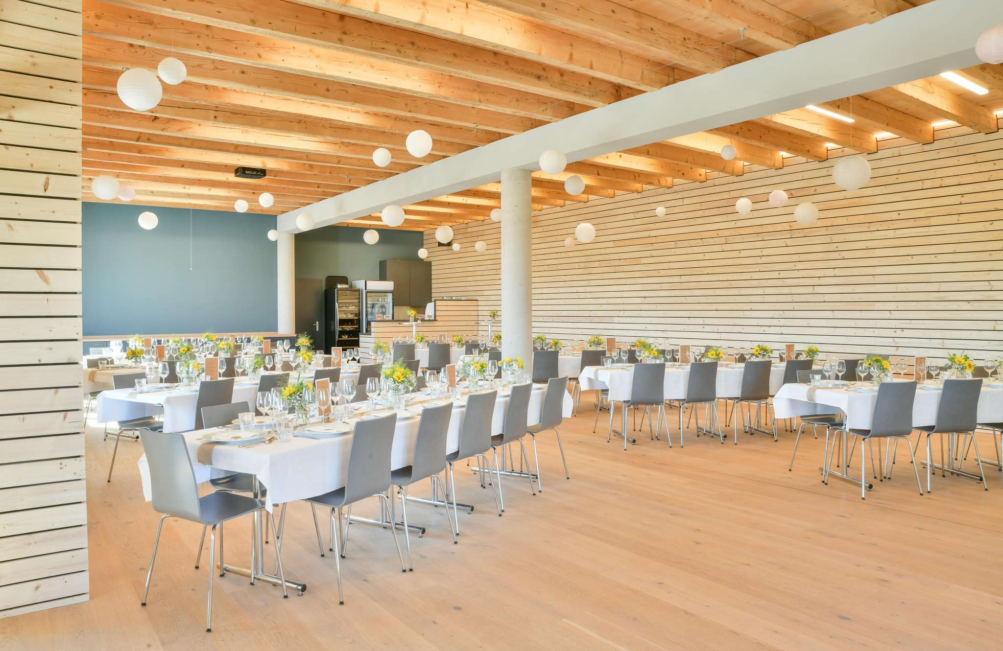 Unser Eventlokal bietet für verschiedene Anlässe das passende Ambiente. Buchen Sie den Gewölbekeller bis 28 Personen oder den modernen Fäscht - Ruum für bis 110 Personen. Die gedeckte Reblaube bietet Platz für 90 Personen.