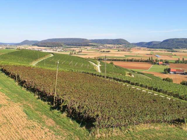 Die Reben prägen die Aussicht und das Bild vom Wilchingerberg auf eine besonders schöne Weise. Bestaunen Sie mit Ihren Gästen die Landschaft vom Klettgau.