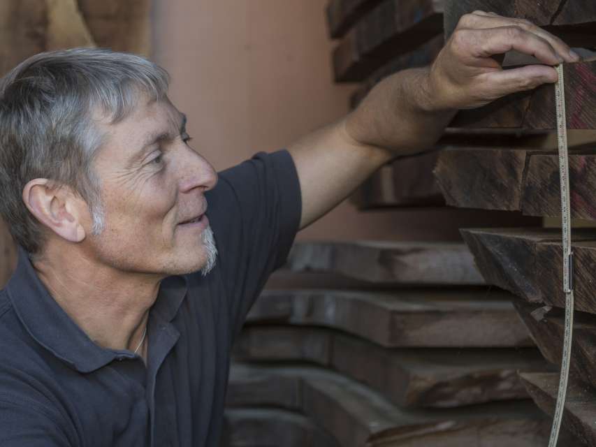 «Die Freude unserer Kundinnen und Kunden ist immer wieder erstaunlich, wenn wir ihnen erzählen können, wo genau der Baum gestanden hat, aus welchem wir ihr- «Regionales Naturpark Möbel» gebaut haben. Natürlich schaffen auch wir es nicht, nur mit regional gewachsenem Holz, zu schreinern. So weichen wir dann beim Holzeinkauf aus, auf Holz welches das Gütesiegel «Schweizer Holz» hat. Um möglichst viele Kunden mit Holz aus der Region bedienen zu können, unterhalten wir in unserer Schreinerei ein grösseres Massivholzlager, mit vielen verschiedenen Holzarten, sortiert und so erfasst, dass wir Herkunft, Waldbesitzer, Sägereibetrieb und Einschlagjahr nachverfolgen können.»