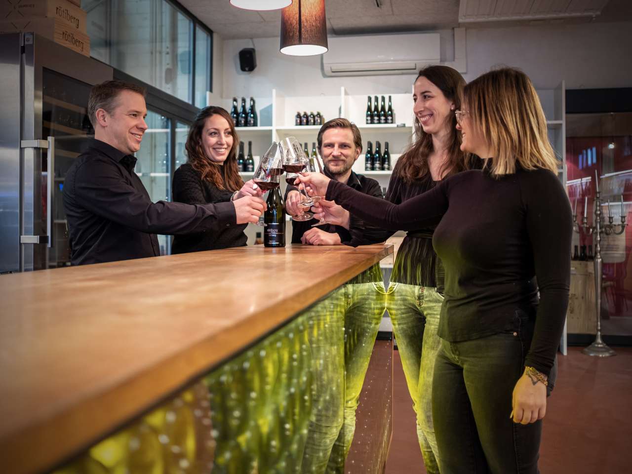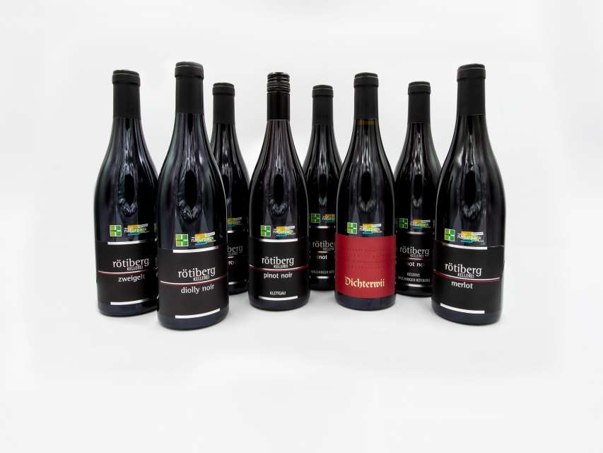 Im Norden der Schweiz erstreckt sich eine vor Urzeiten vom Rhein geformte Region – der Klettgau. Um die dort ansässigen Winzerdörfer Wilchingen, Osterfingen und Trasadingen wachsen die Reben, die im Hause Rötiberg mit höchster Sorgfalt vinifiziert werden. Ideenreichtum und Kreativität sind die Aushängeschilder der Kellerei. 2001 wurde die Rötiberg-Kellerei durch die hiesigen Rebbauern ins Leben gerufen. Der Name Rötiberg stammt von einer der bestgelegenen und sonnigsten Reblagen am Wilchingerberg im wunderschönen Klettgau – der Wilde Westen von Schaffhausen. Das junge, innovative Team packt dort an, wo Arbeit ansteht. Teamwork wird ganz grossgeschrieben. Die neuen Marketingideen entstehen meistens bei einigen Gläschen guten Weins. Um guten Wein zu machen, braucht es viele Dinge: guten Boden, die richtige Menge an Sonnenschein und Regen und – vor allem – Liebe zum Weinmachen. Rötiberg glaubt an Weine für den puren Genuss – gemacht, um mit Freude und Freunden getrunken zu werden.