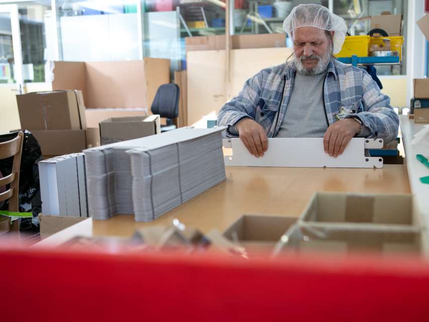 Ein Betriebsstandbein ist die hausinterne Beschäftigung mit sinnstiftender Arbeit, die den Bewohnerinnen und Bewohnern eine wichtige Tagesstruktur gibt. Dabei werden in verschiedenen Gruppen innovative Gebrauchsgegenstände auch mit regionalen Rohstoffen produziert.
